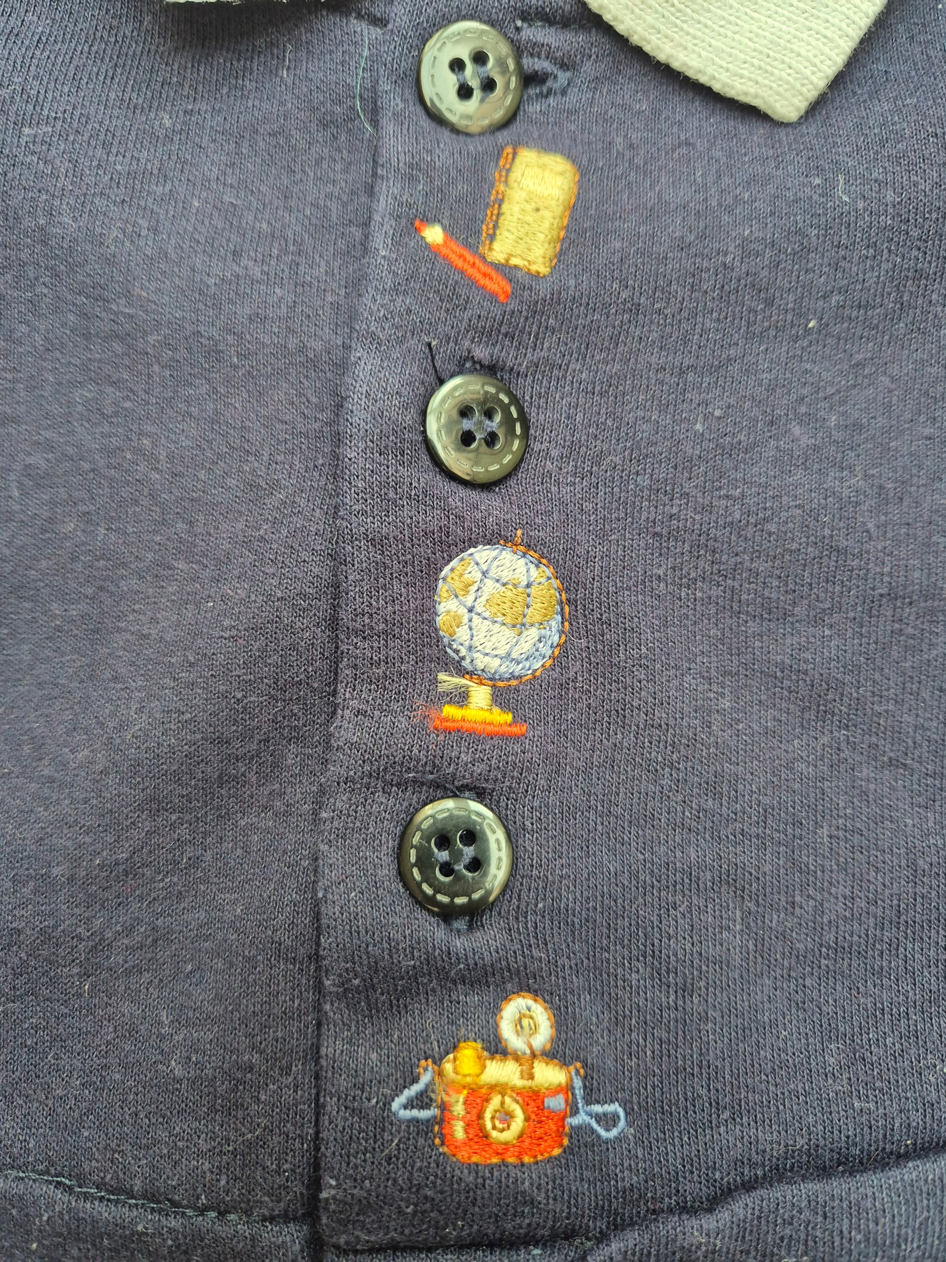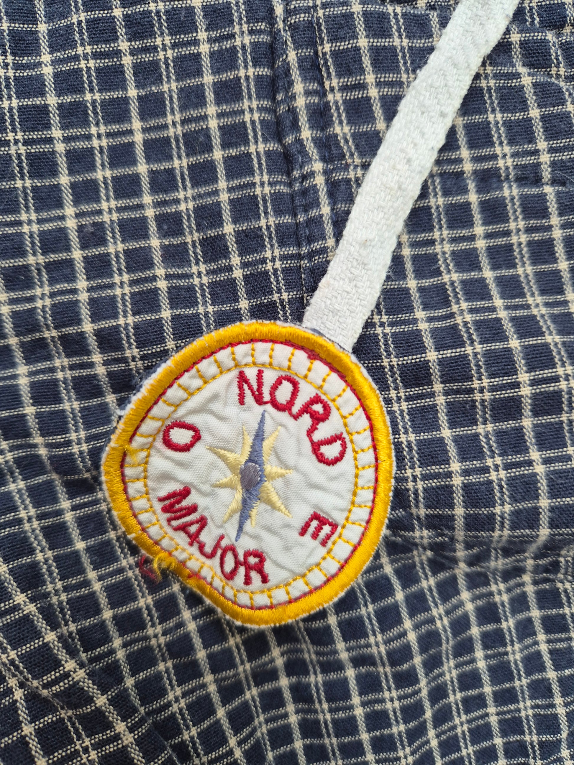 Heerlijk vintage pakje met donkerblauwe top, geruite broek en schattige kleine borduurtjes op de voorkant, inclusief kompas, voor de echte avonturiers.