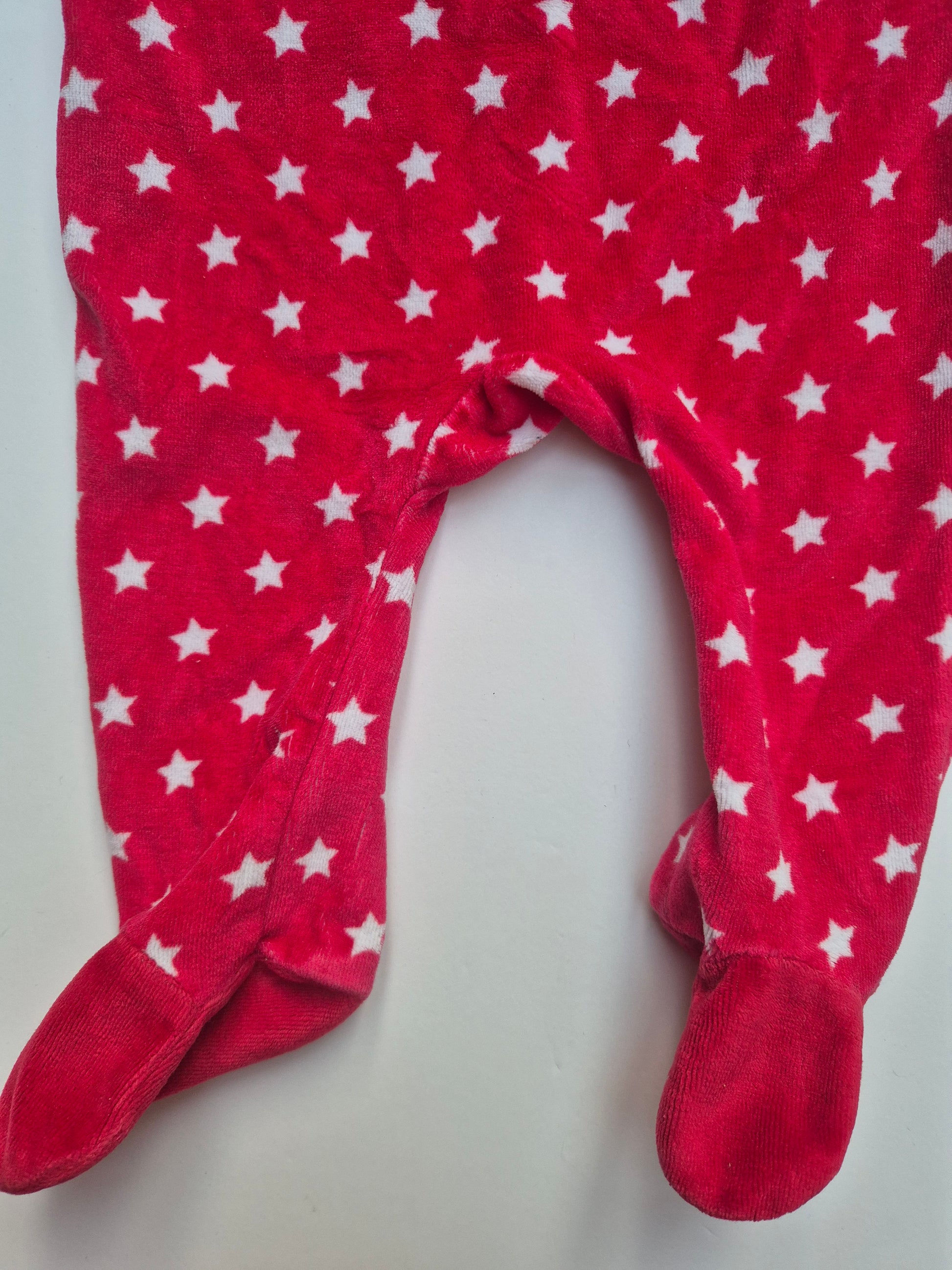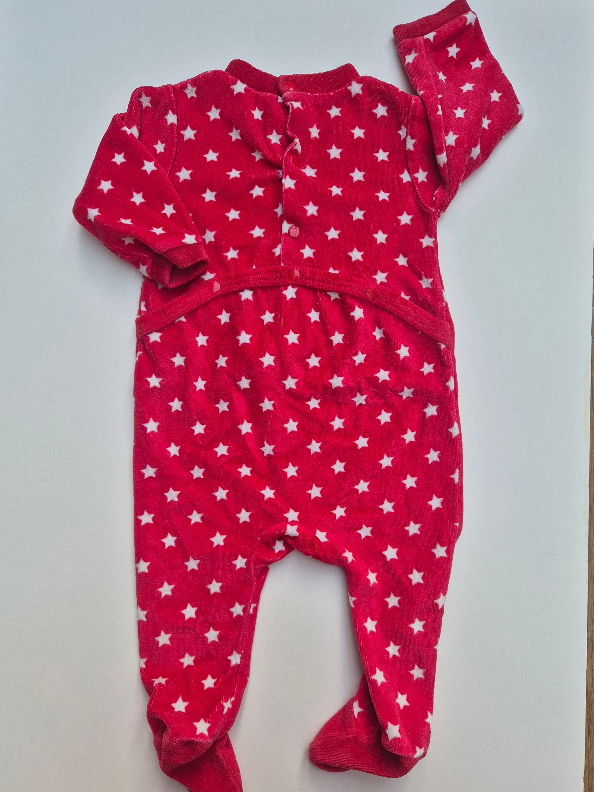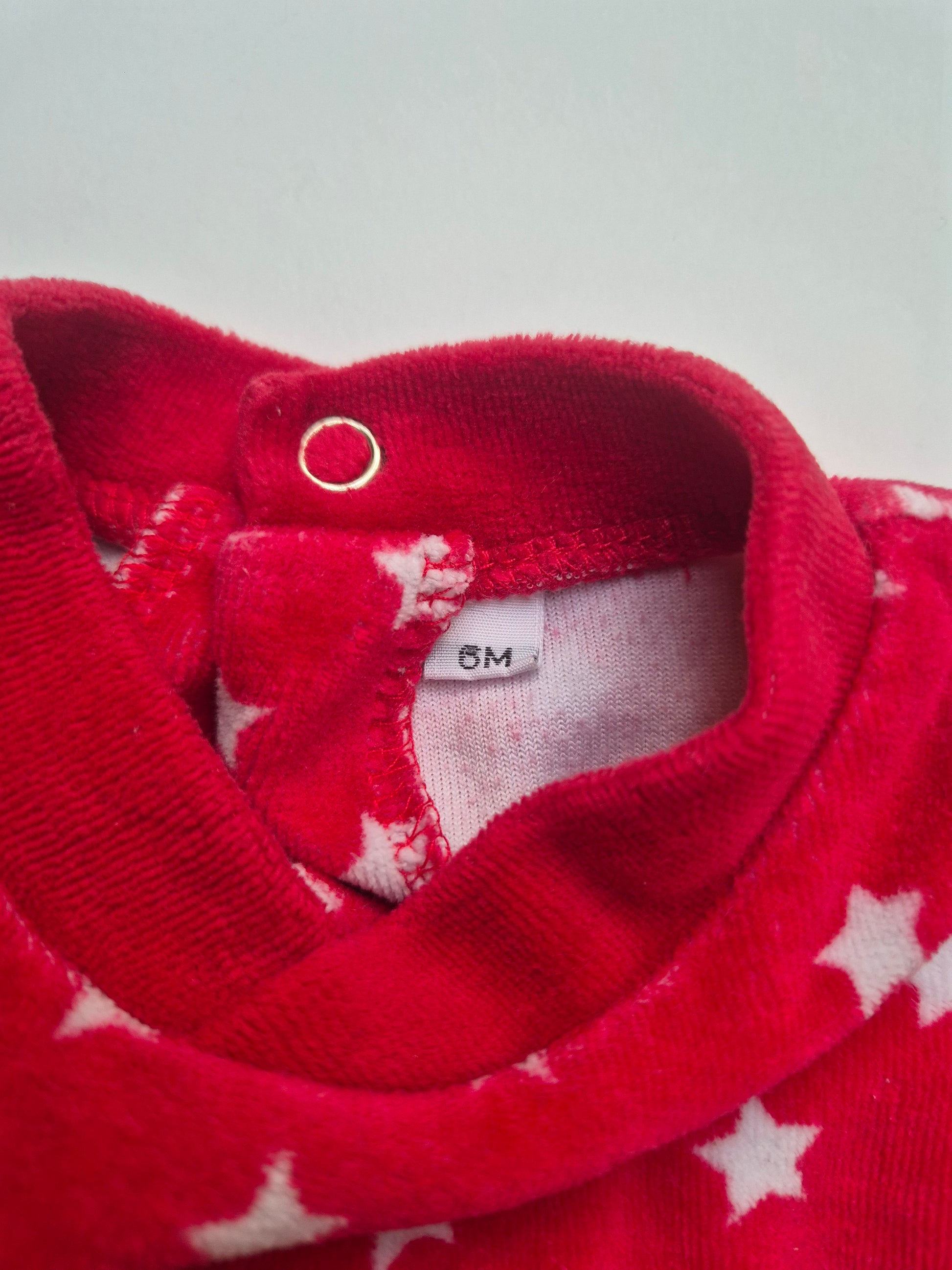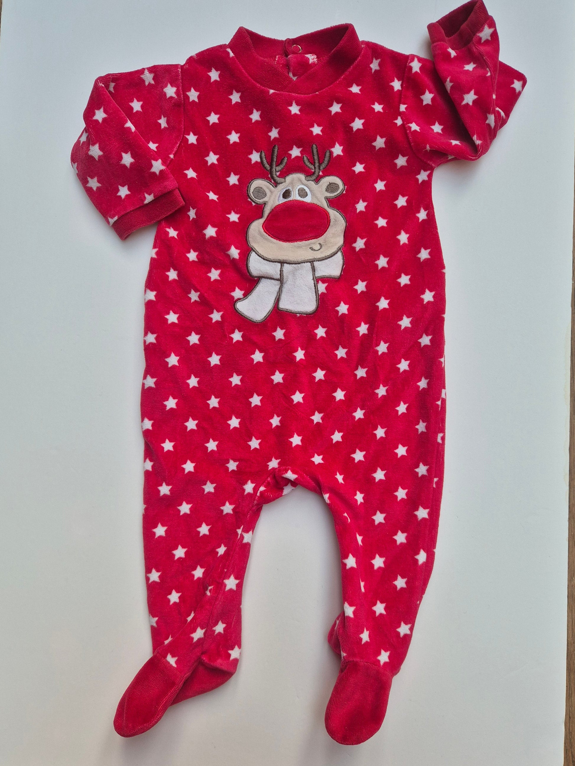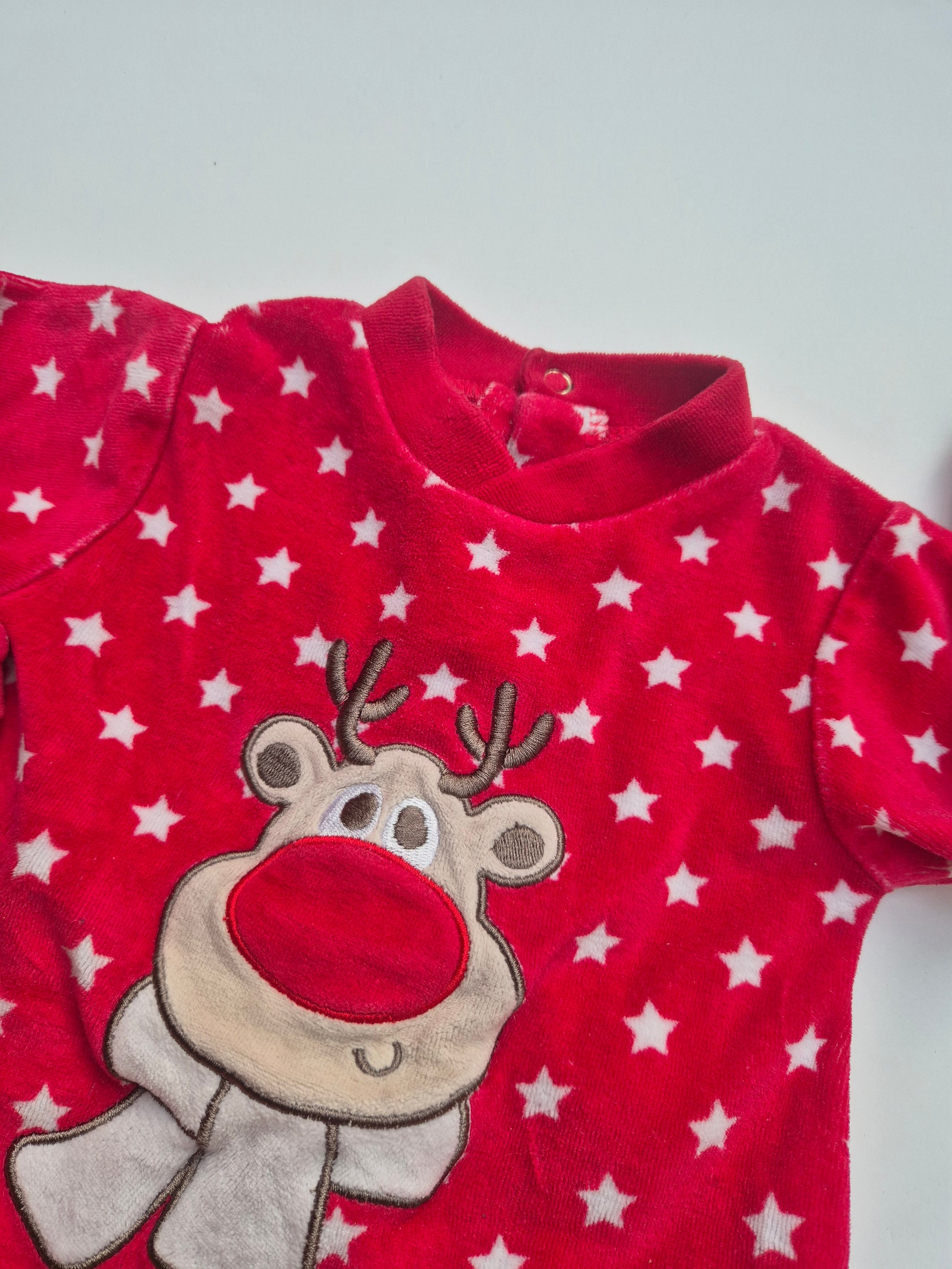 Knuffelzacht velours boxpakje met witte sterren en vrolijk rendier op de borst. Heerlijk warm voor koude nachten of als cozy kerstoutfit.