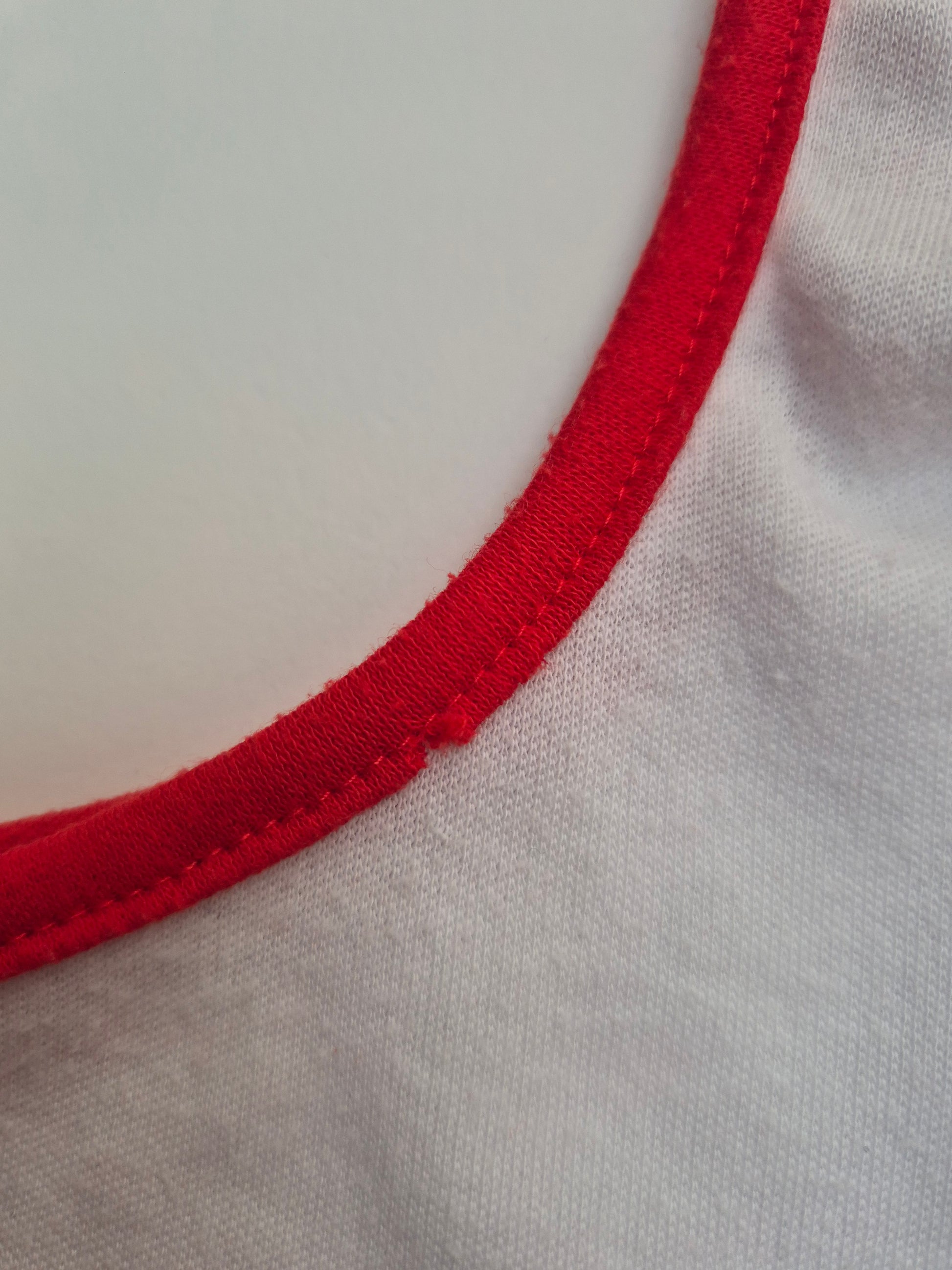 Zomers pakje zonder mouwen in wit met mintgroen, rood afgewerkt. Op de borst een vrolijke “Captain Baby Boy”-patch. Vintage C&A.