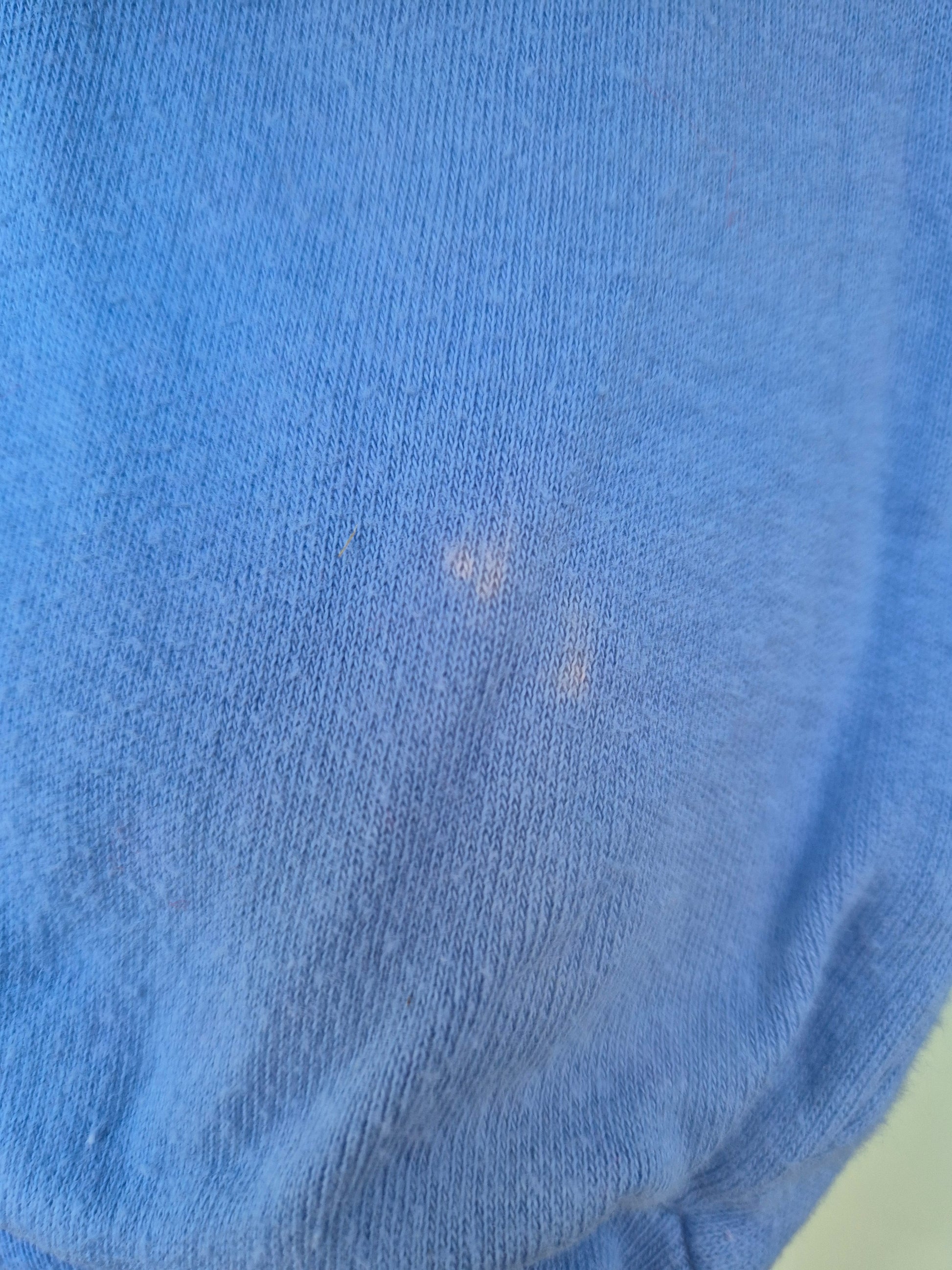 Let op! Het 'krasje': mini gaatje in de boord en klein vlekje op linkerbroekspijp.