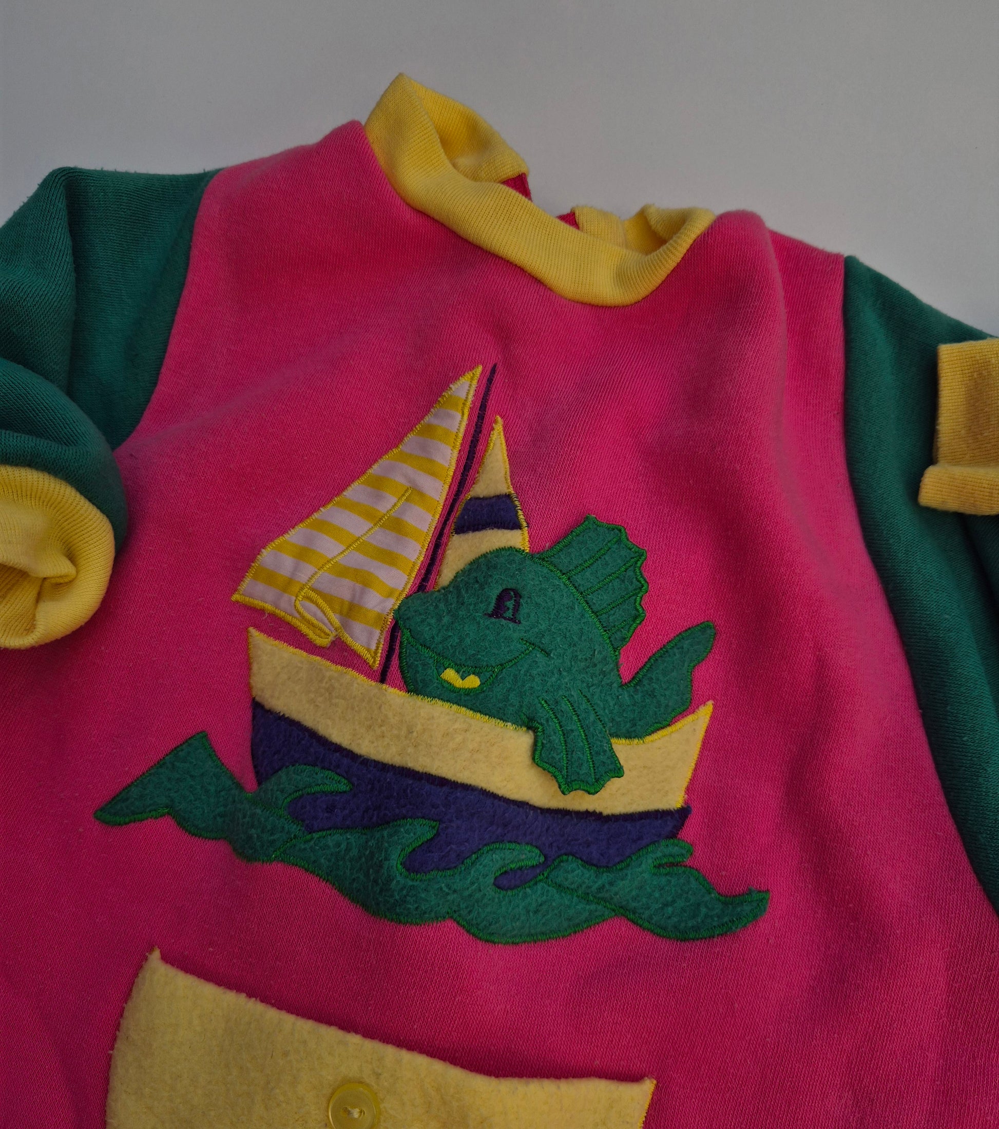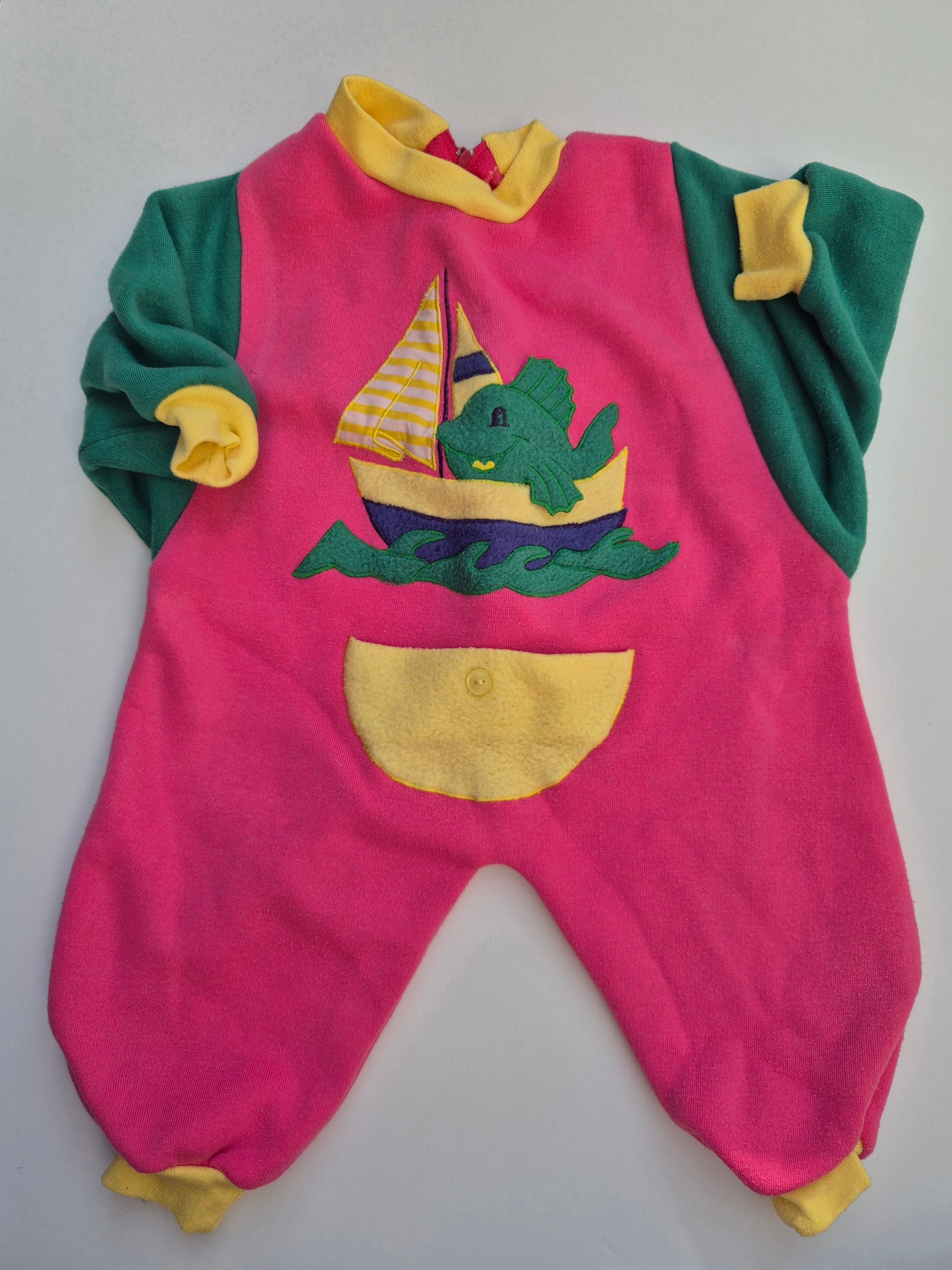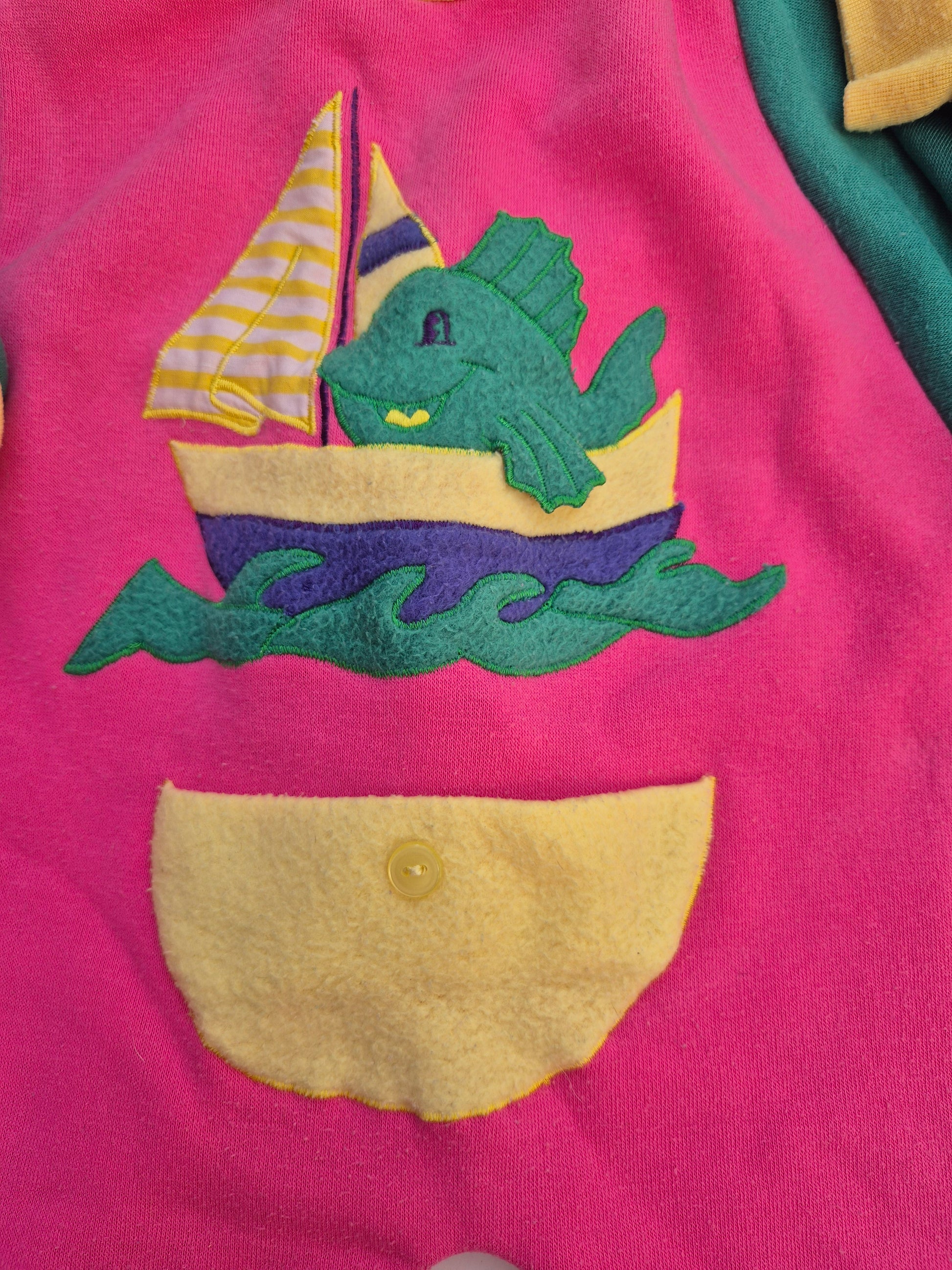 Knuffelzacht fleecepakje met vrolijke kleuren en een vis op zee, voor kleine avonturiers.