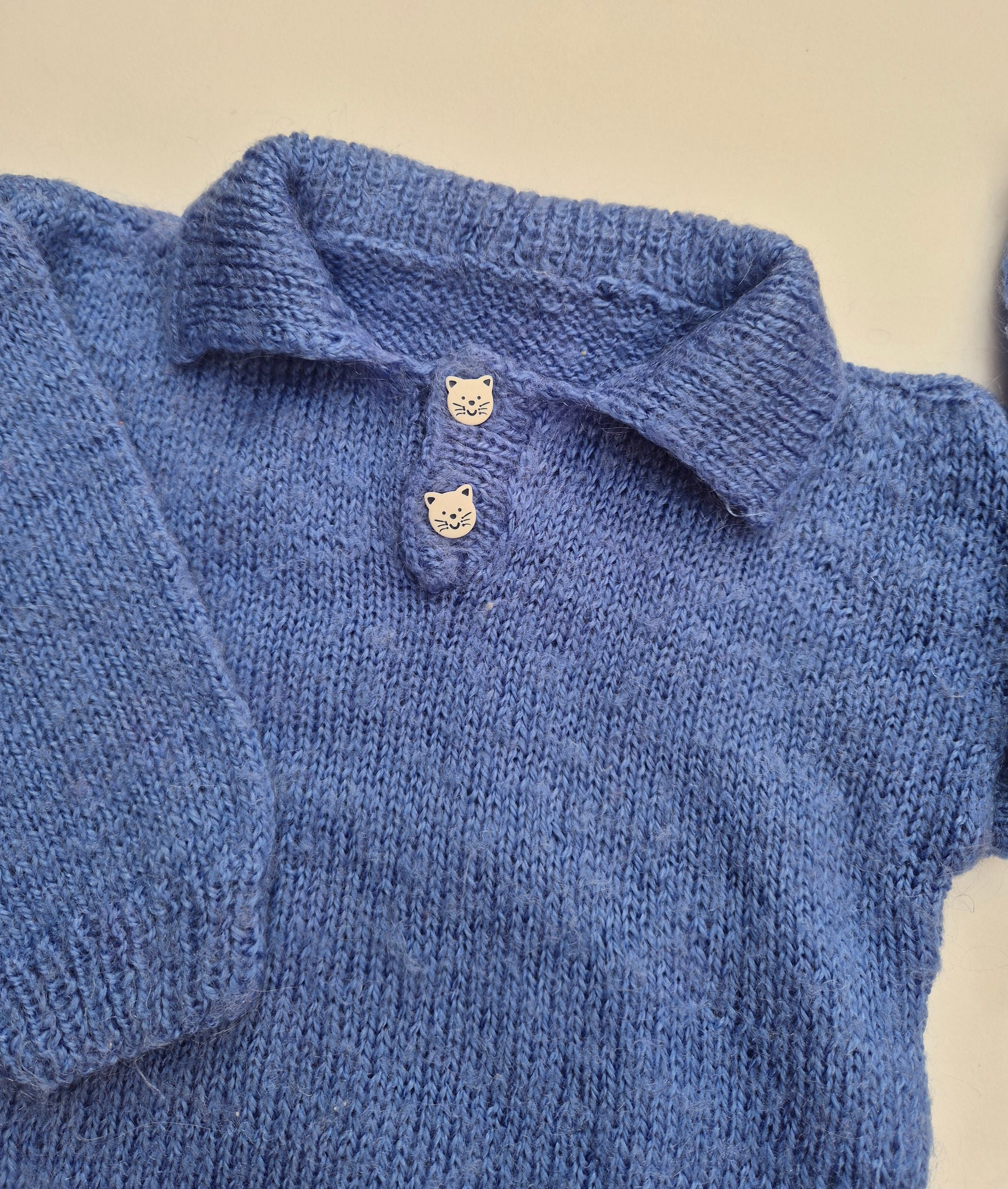 Gebreide blauwe trui - maat 74 | 6 - 9 maanden