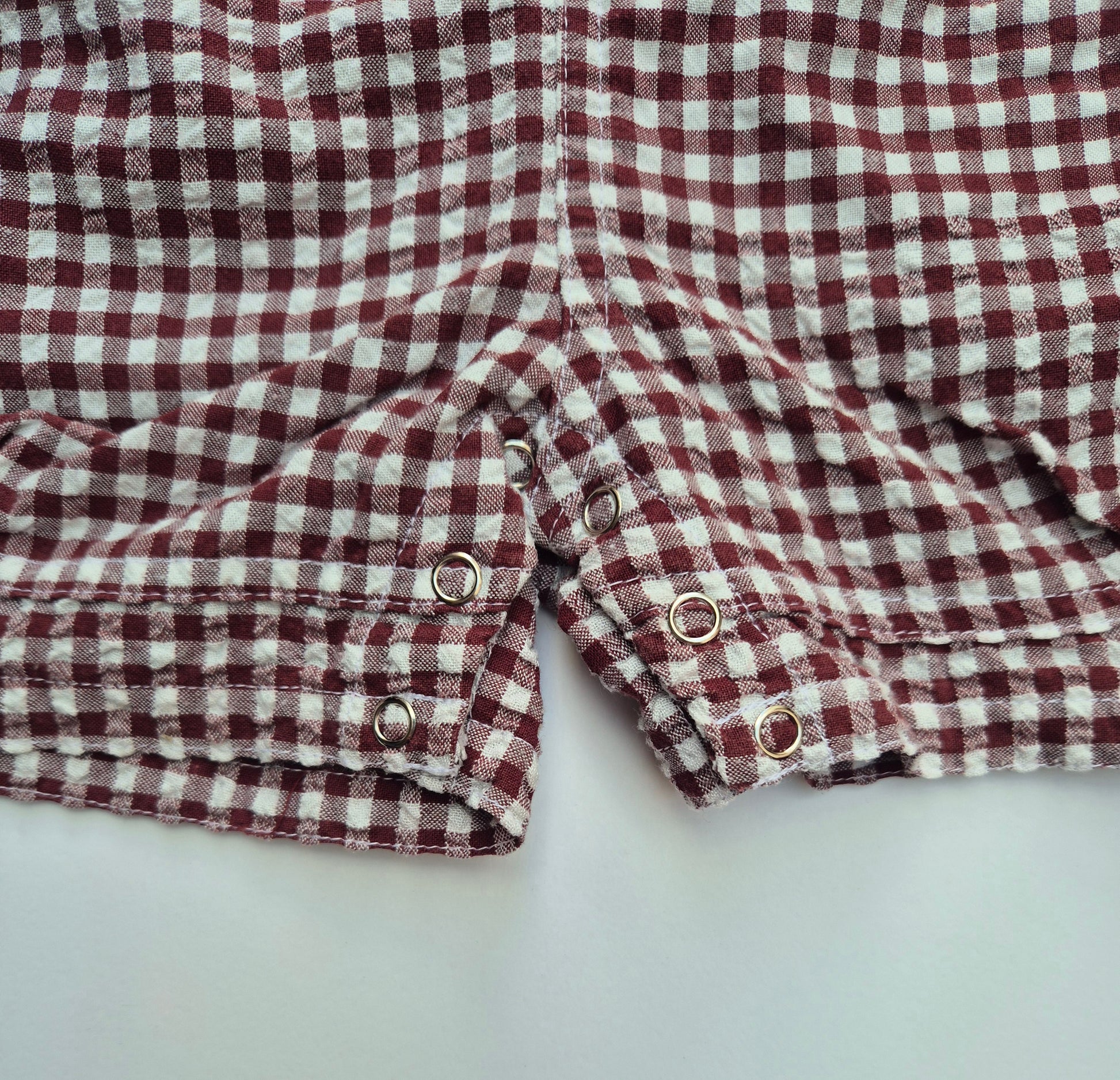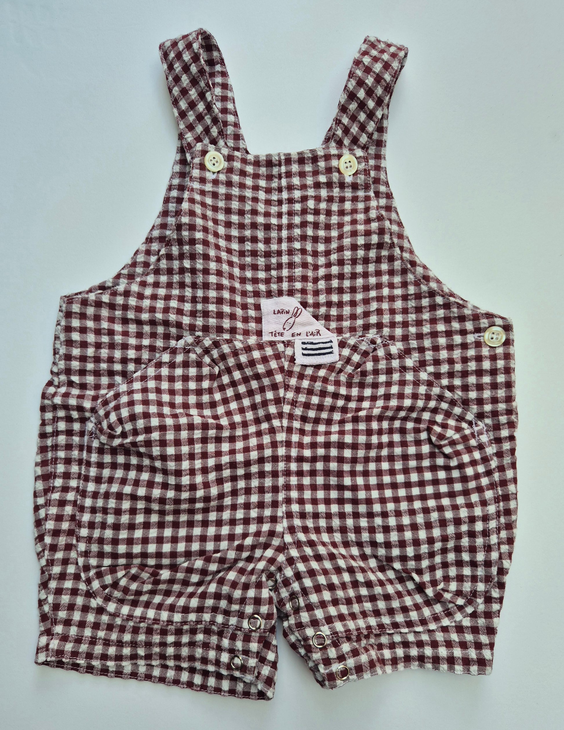 Geruite tuinbroek bordeaux/wit – maat 74 | 6 - 9 maanden