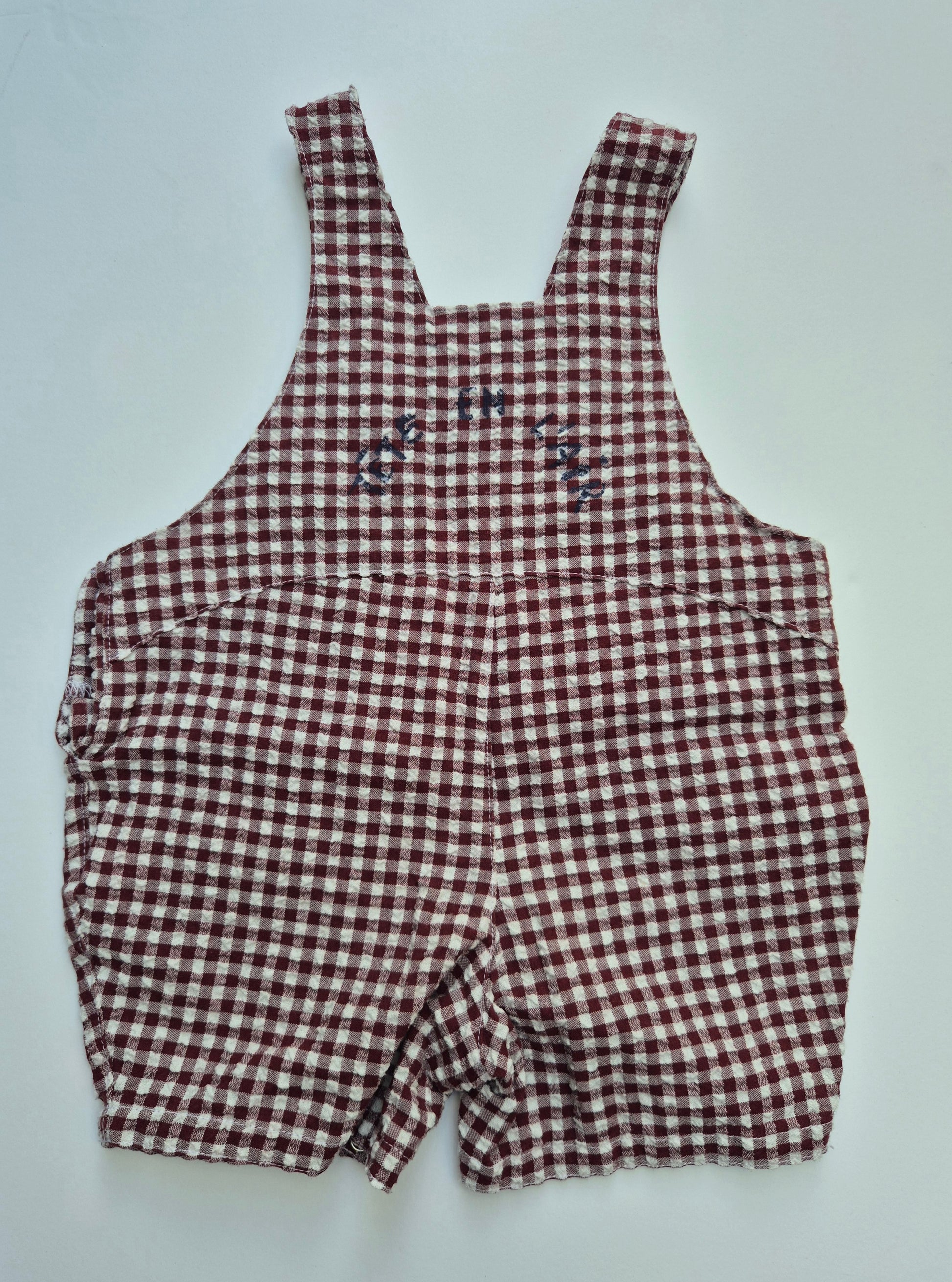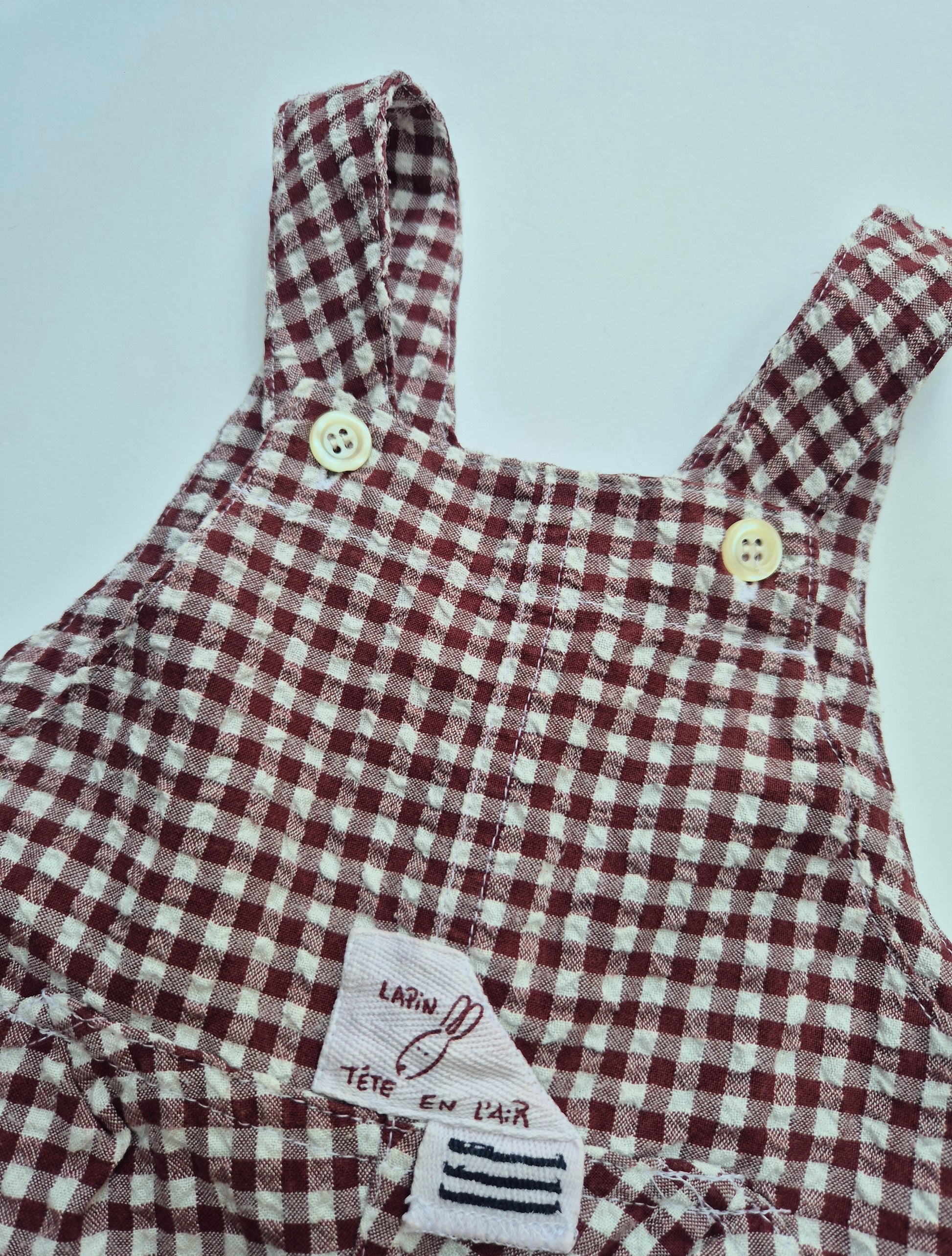 Klassieke geruite tuinbroek in bordeauxrood met wit. Tijdloos vintage stuk dat meteen karakter geeft aan elke outfit.