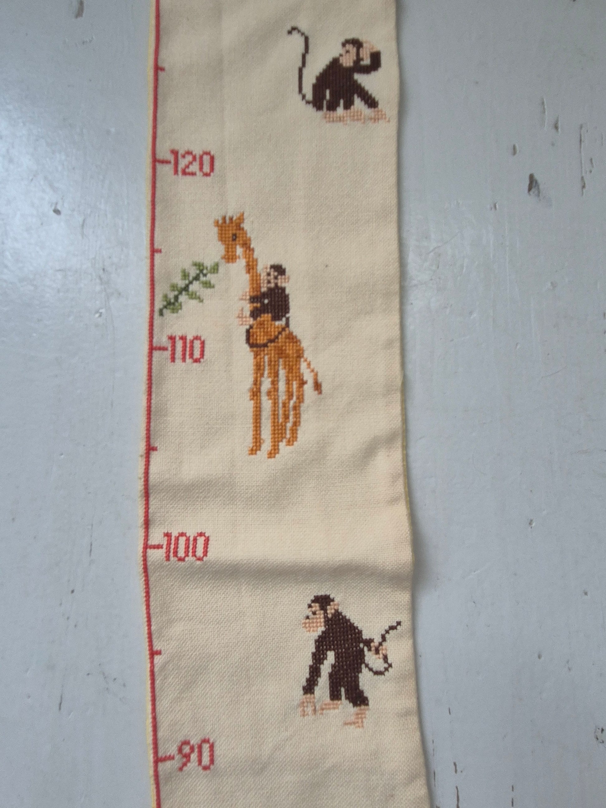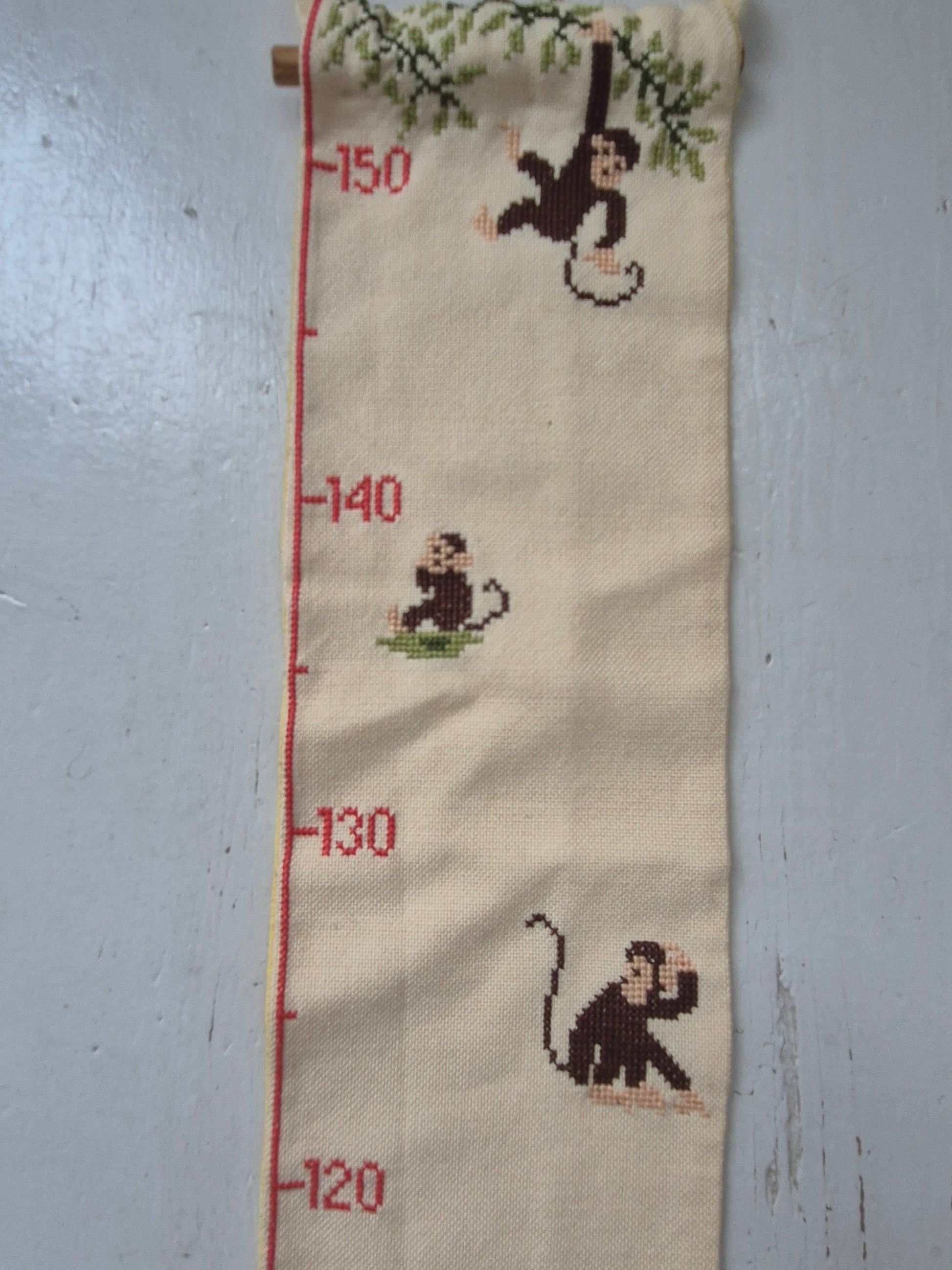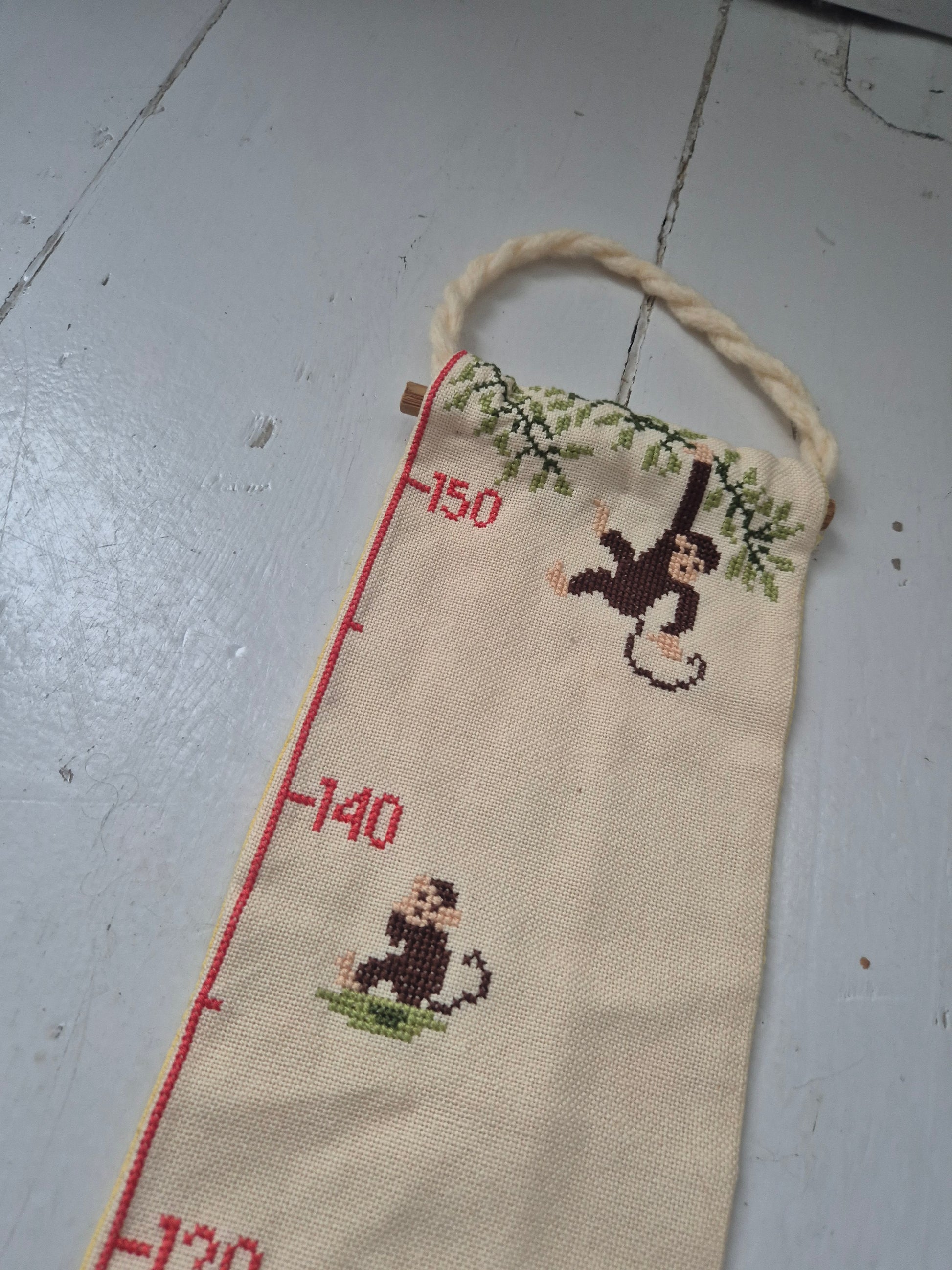 Met de jaren meegroeien, letterlijk. Deze geborduurde groeimeter met aapjes en giraffes is pure nostalgie voor aan de muur van de kinderkamer. Met touwtje om op te hangen en charmant handwerk dat elke centimeter een glimlach geeft.