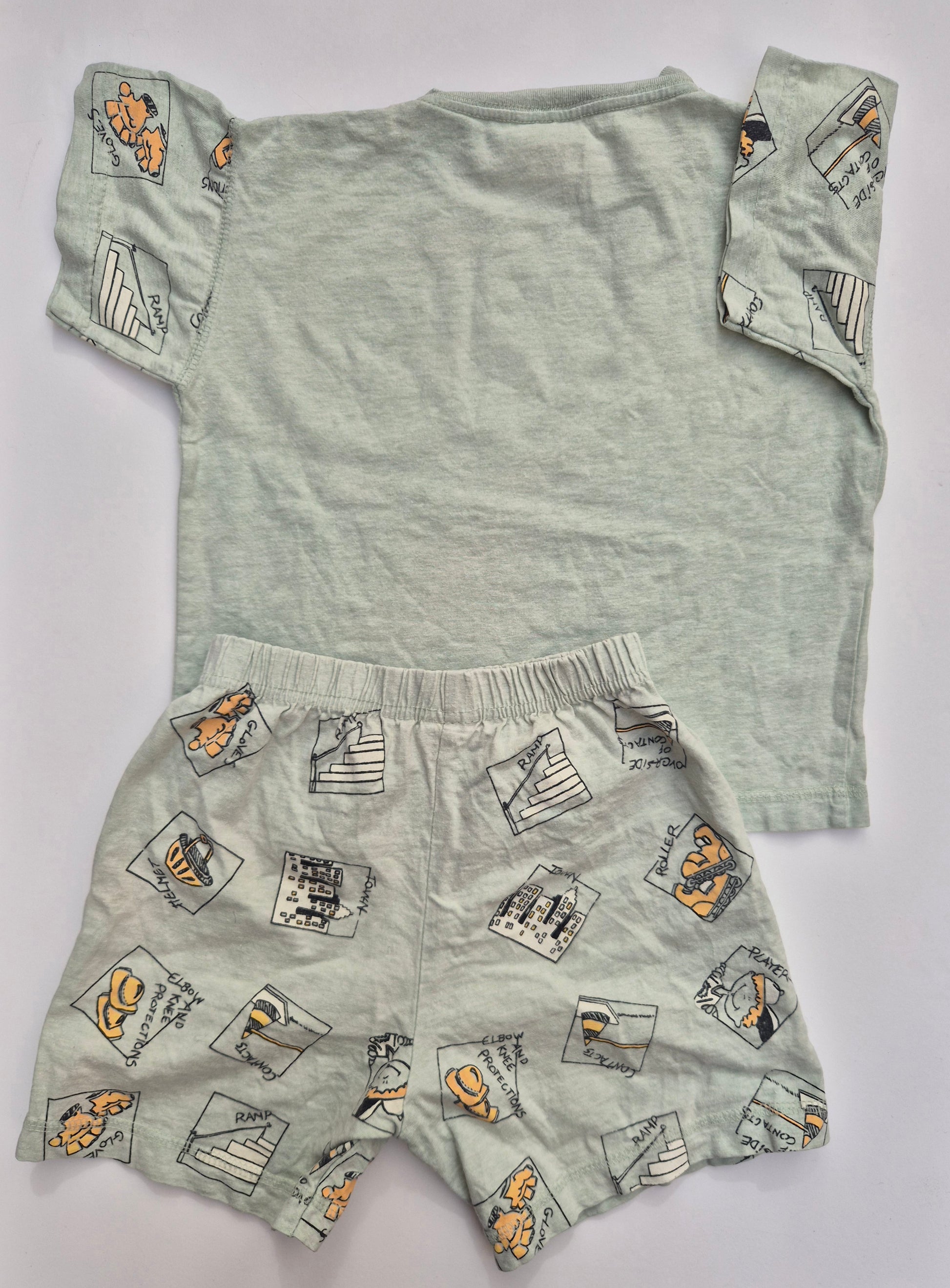 Groene set met T-shirt en korte broek, voor de echte stoere wiebelmensjes.