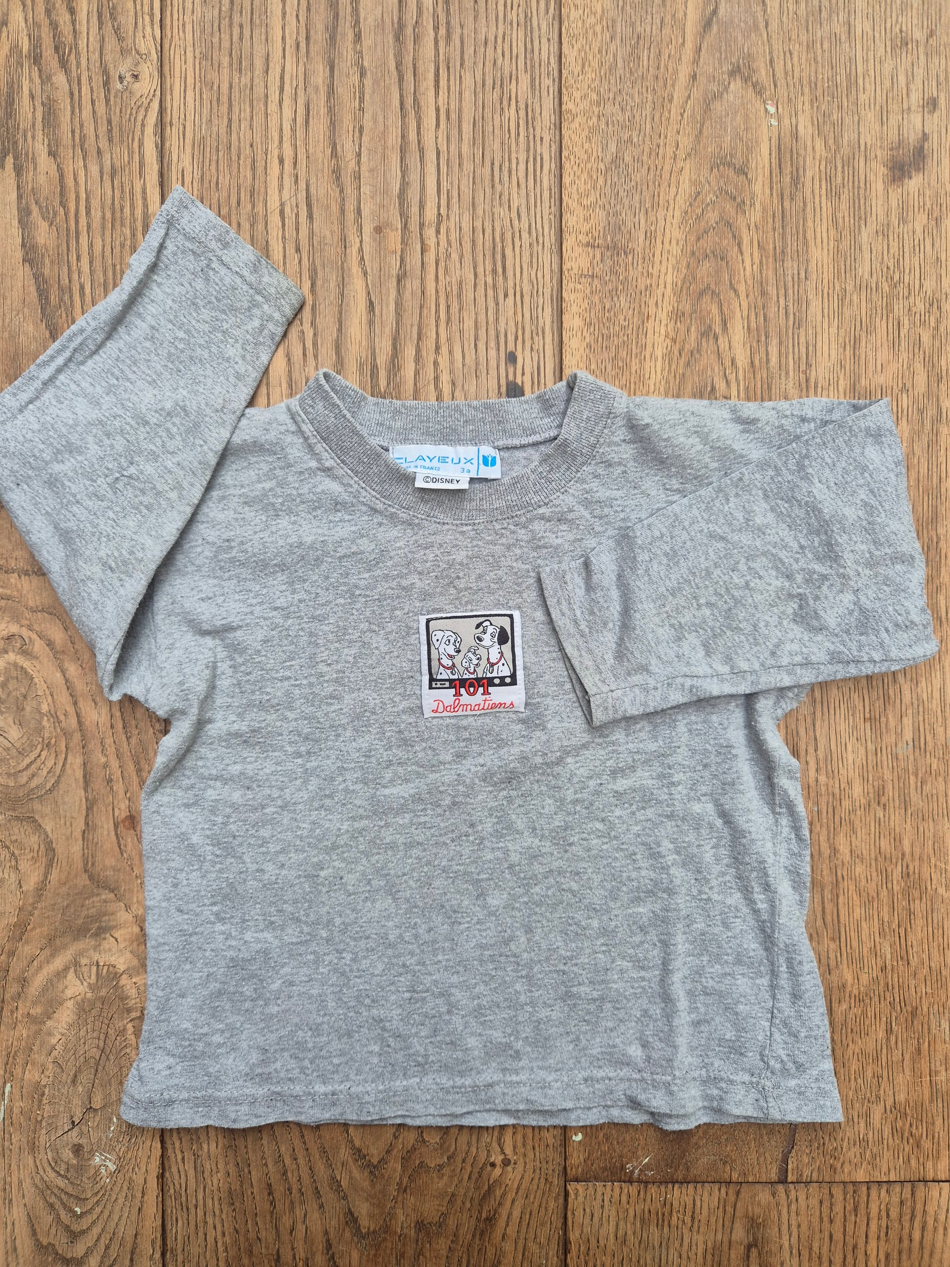 Grijze longsleeve met originele vintage Disney 101 Dalmatians patch op de borst. Tijdloos, speels en heerlijk comfortabel.