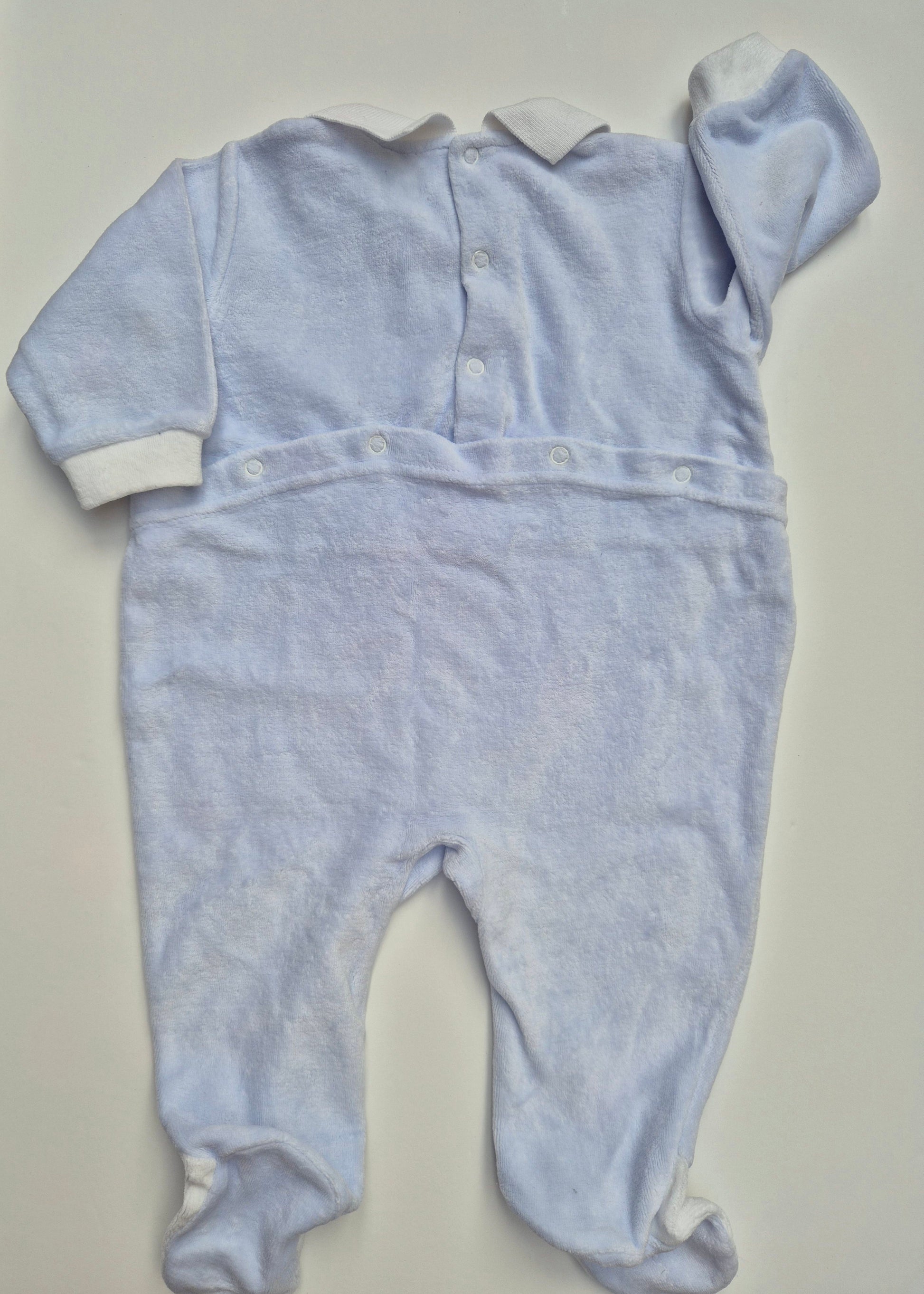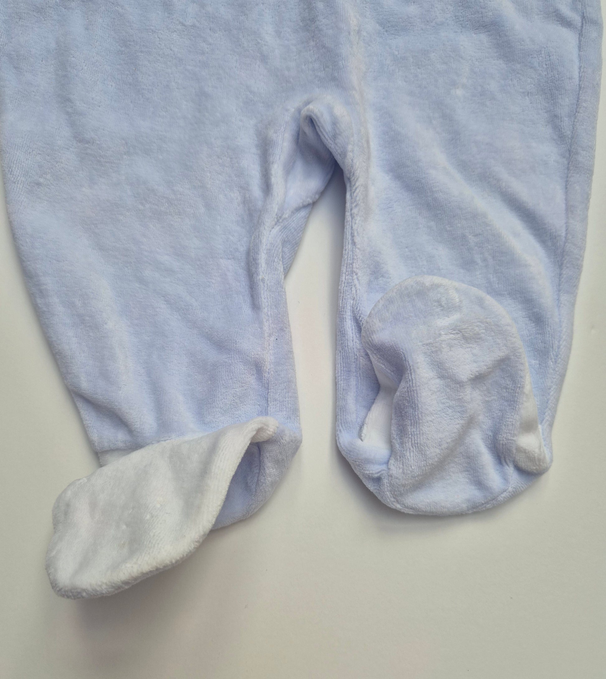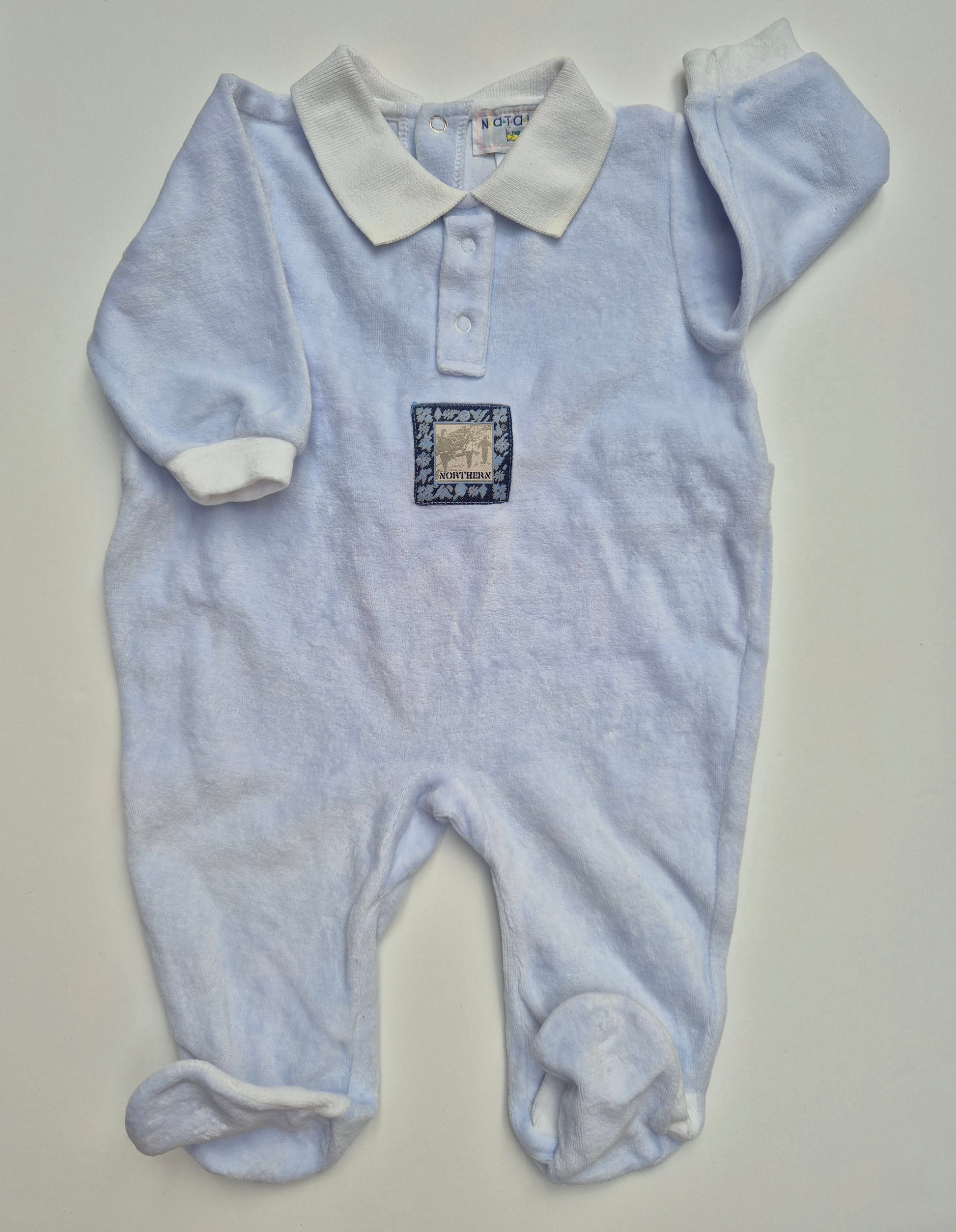 Knuffelzacht pakje in lichtblauw met witte polo-kraag en Northern patch op de borst. Met handige drukknoopjes aan de achterkant voor makkelijk uit en aantrekken.