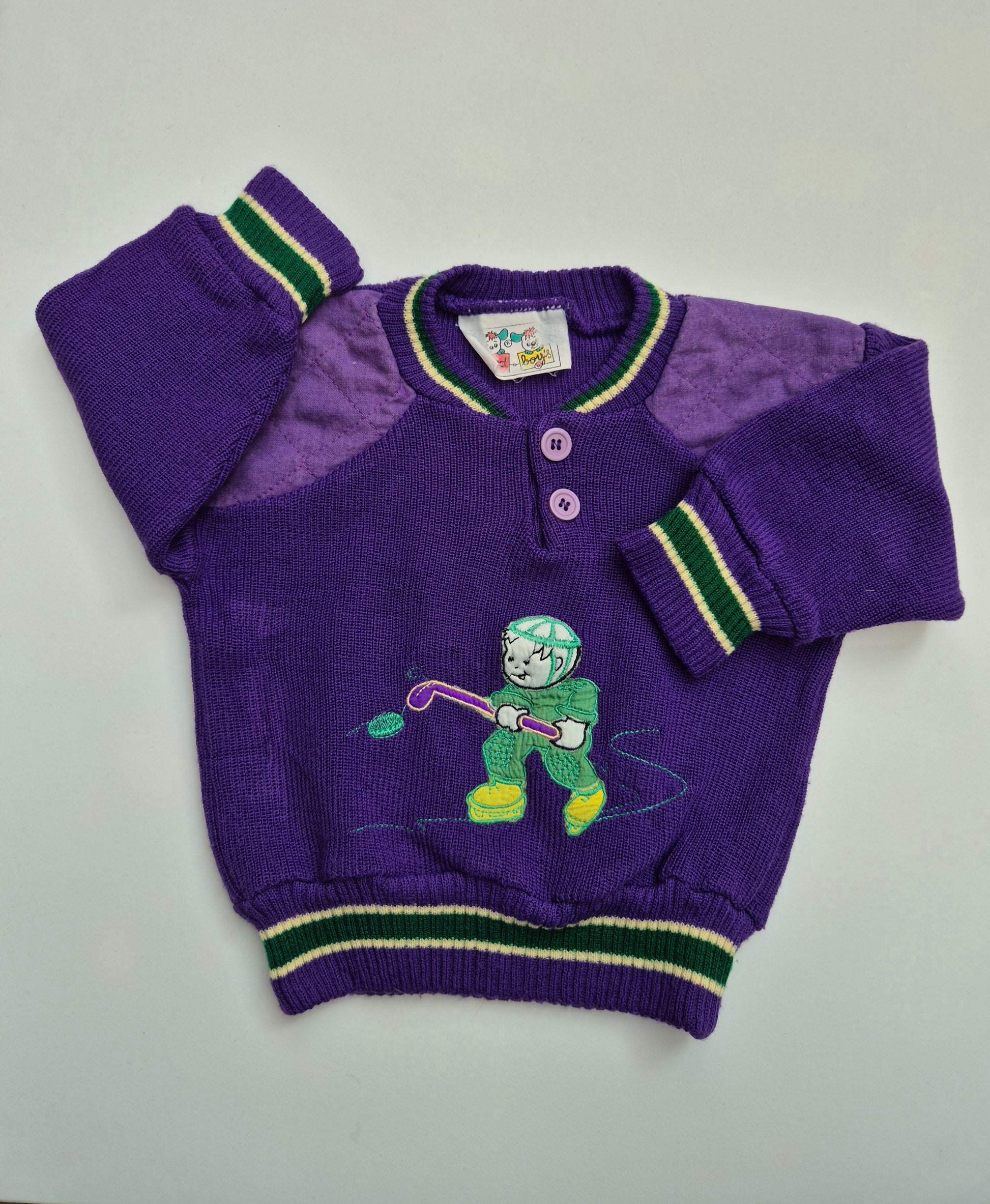 Paarse trui met ijshockeyfiguur – maat 80 | 9 - 12 maanden