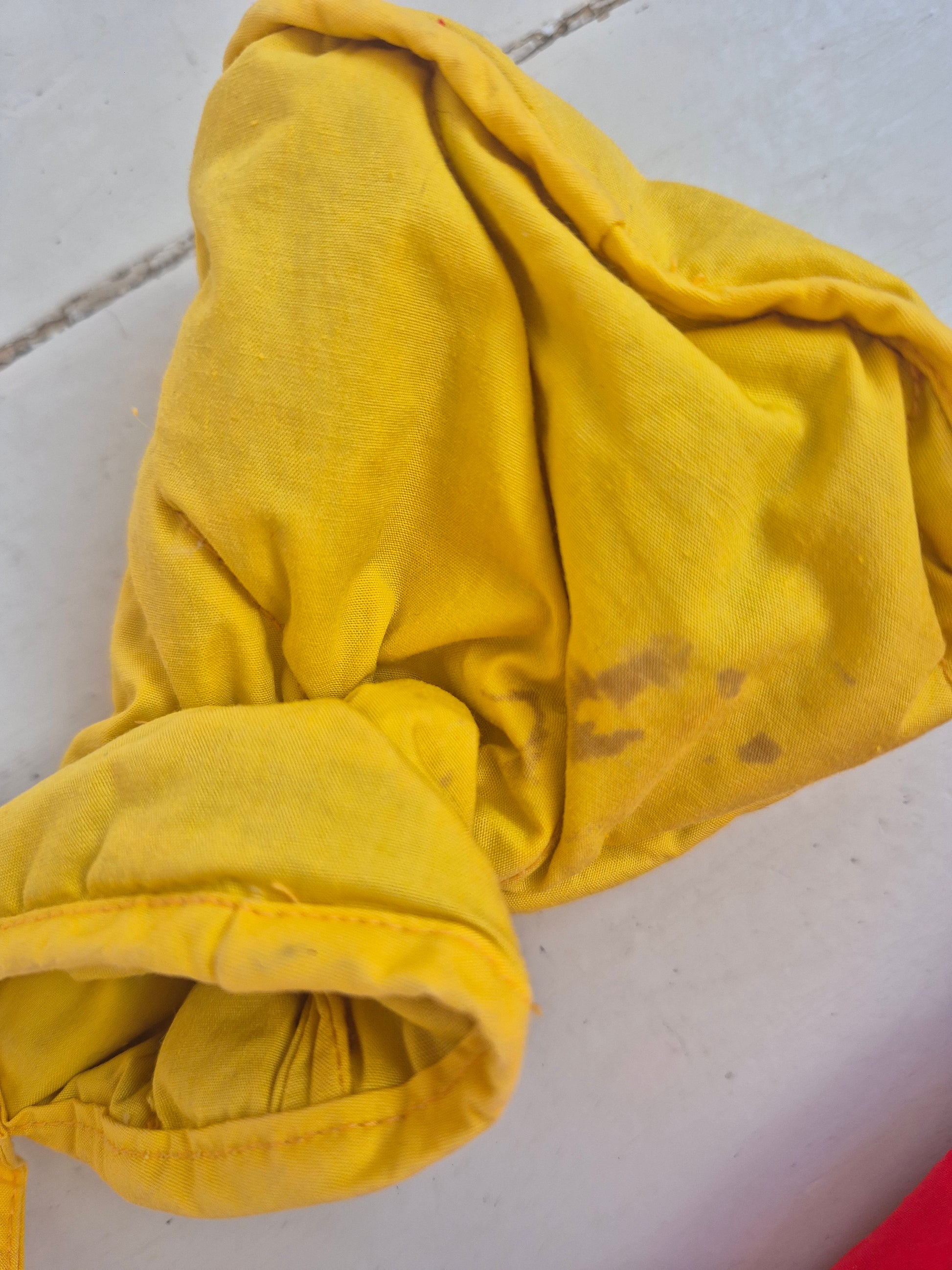 Let op! Het krasje: vlekje op één van de slofjes, zie laatste foto.