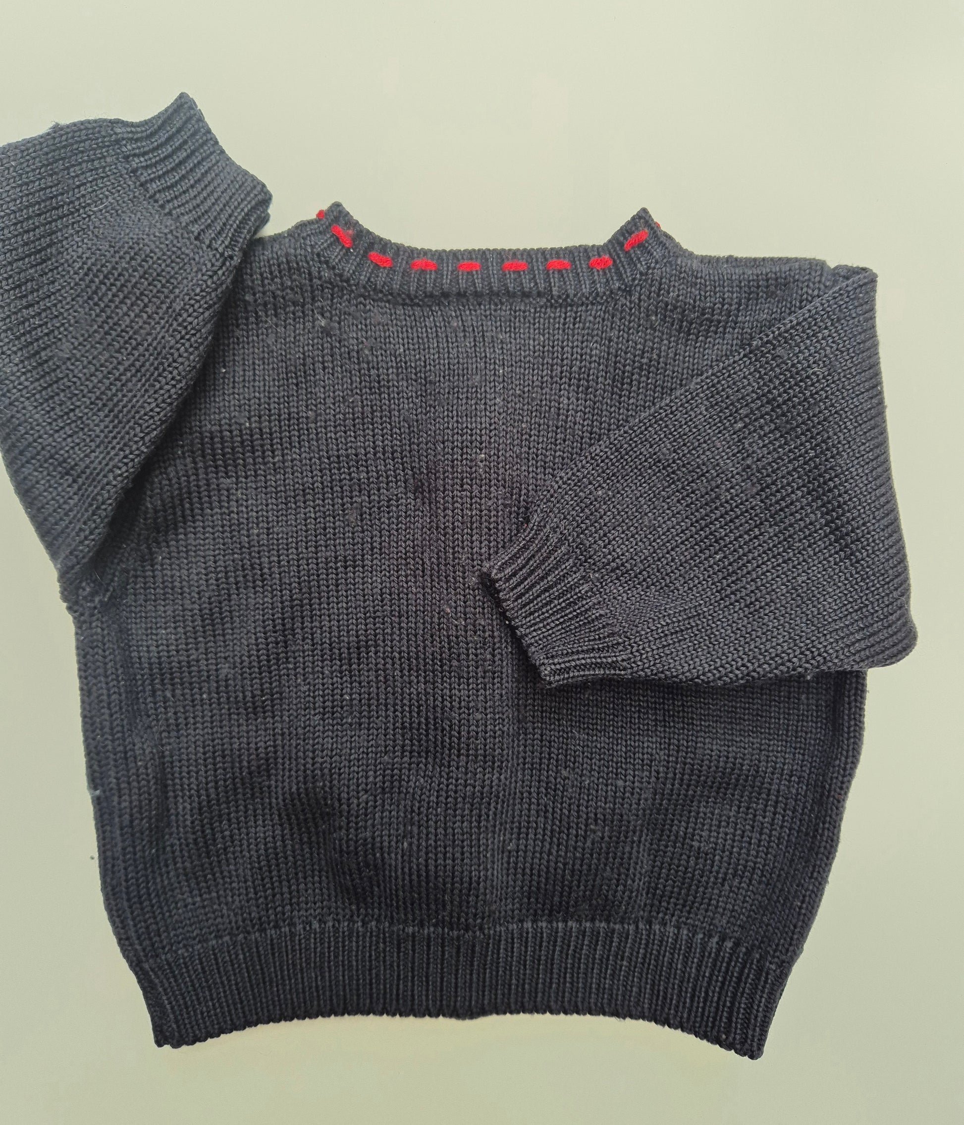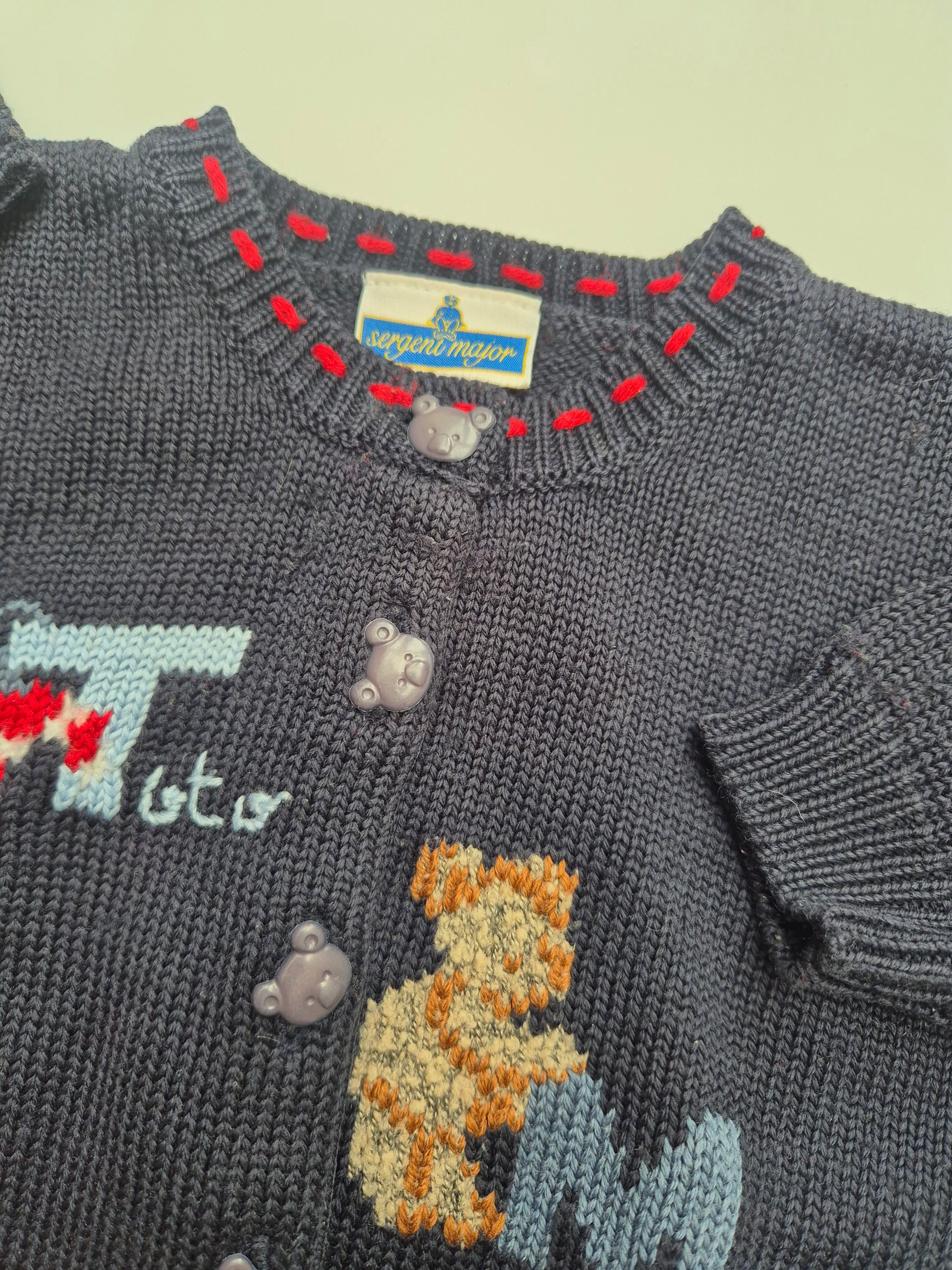 Een donkerblauw breivest vol retro vibes. Met schattige borduurtjes zoals een beertje en letters die het helemaal Wibbel maken. Perfect voor kleine avonturiers die graag warm én stijlvol blijven.