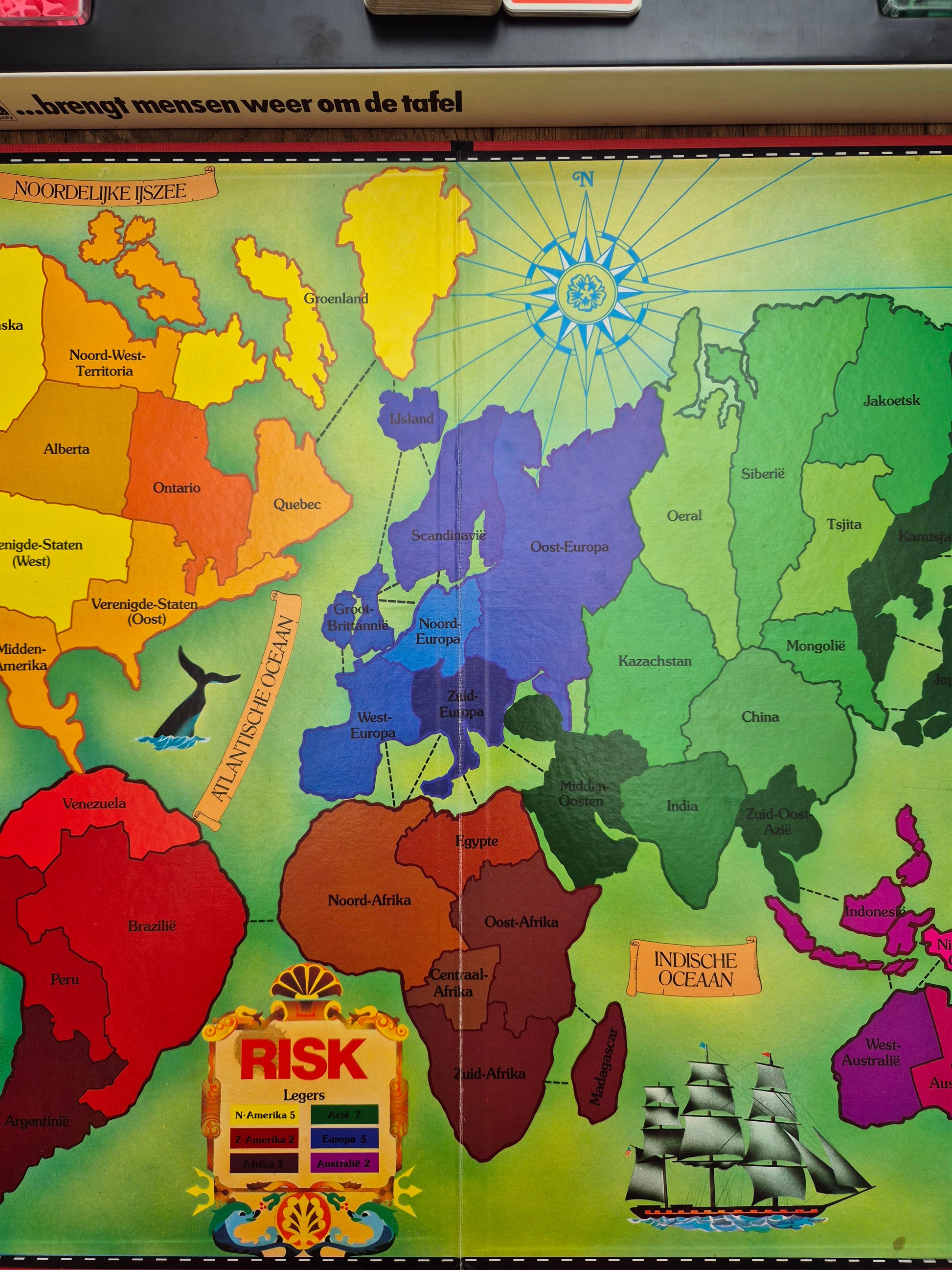 Vintage Risk: Een stukje speelgeschiedenis voor strategen van vroeger én nu. Inclusief originele spelregels. Let op: twee dobbelstenen zijn vervangen omdat deze ontbraken.