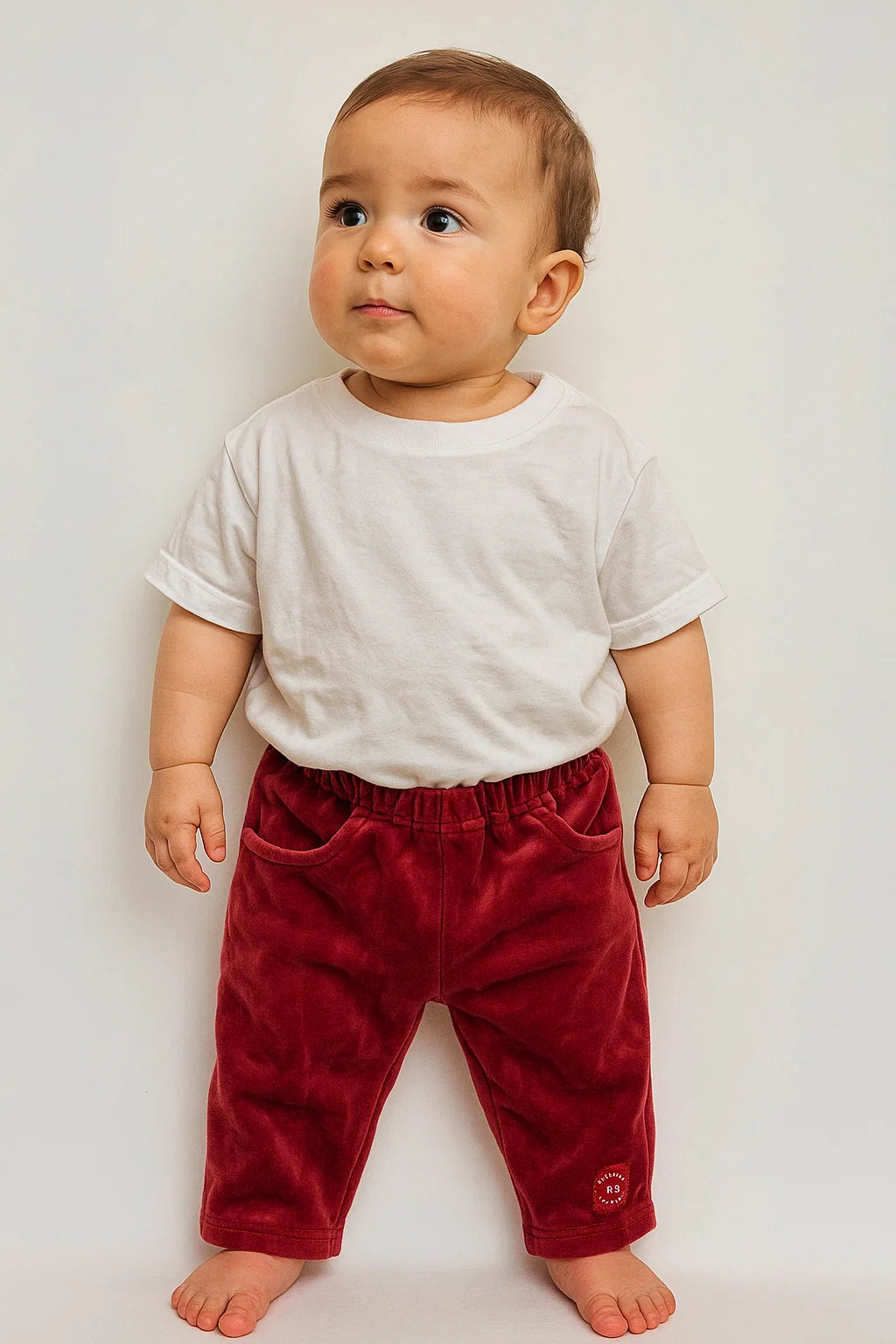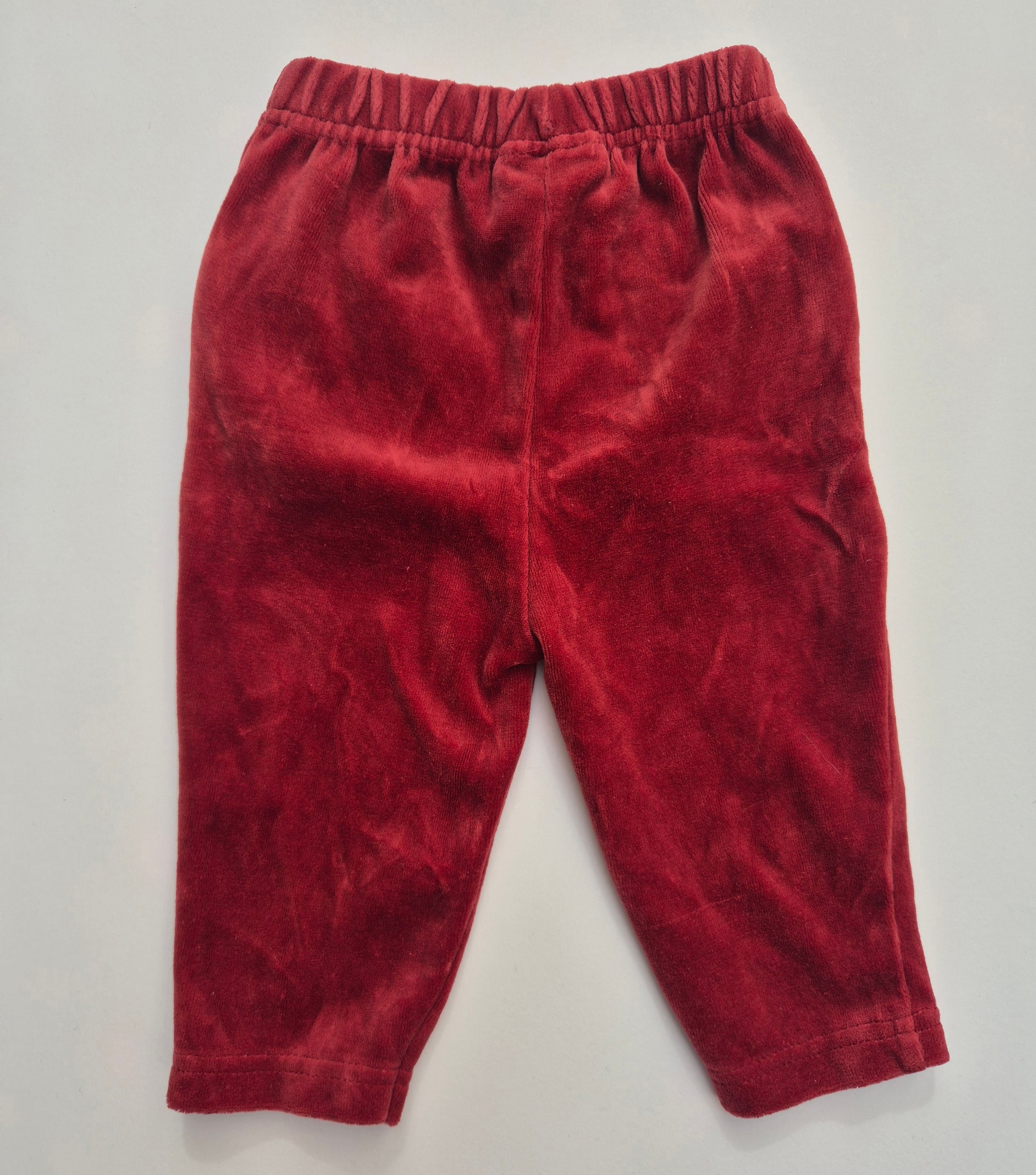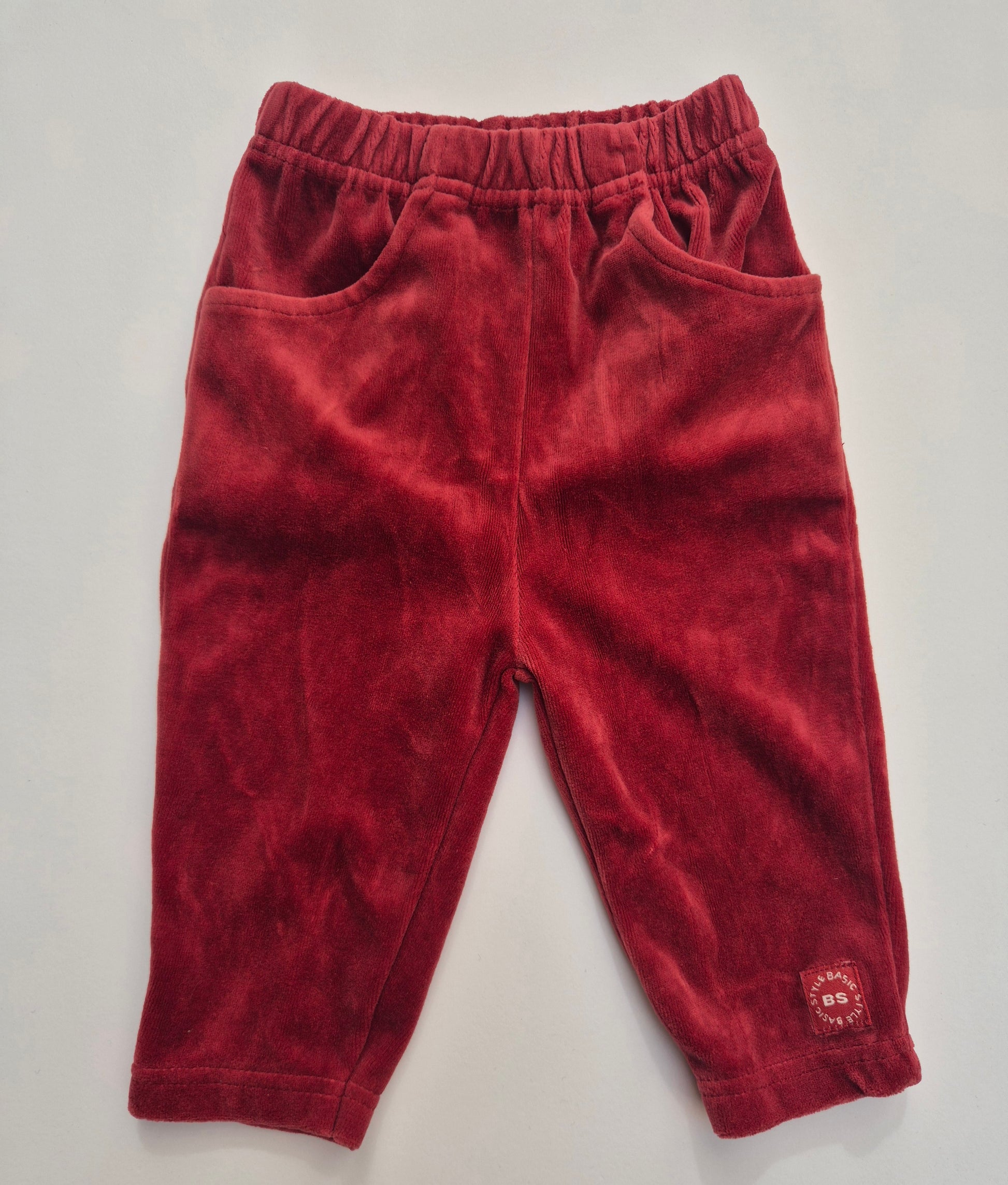 Warme en zachte vintage broek in diep rood velours, met elastische taille en zakjes.