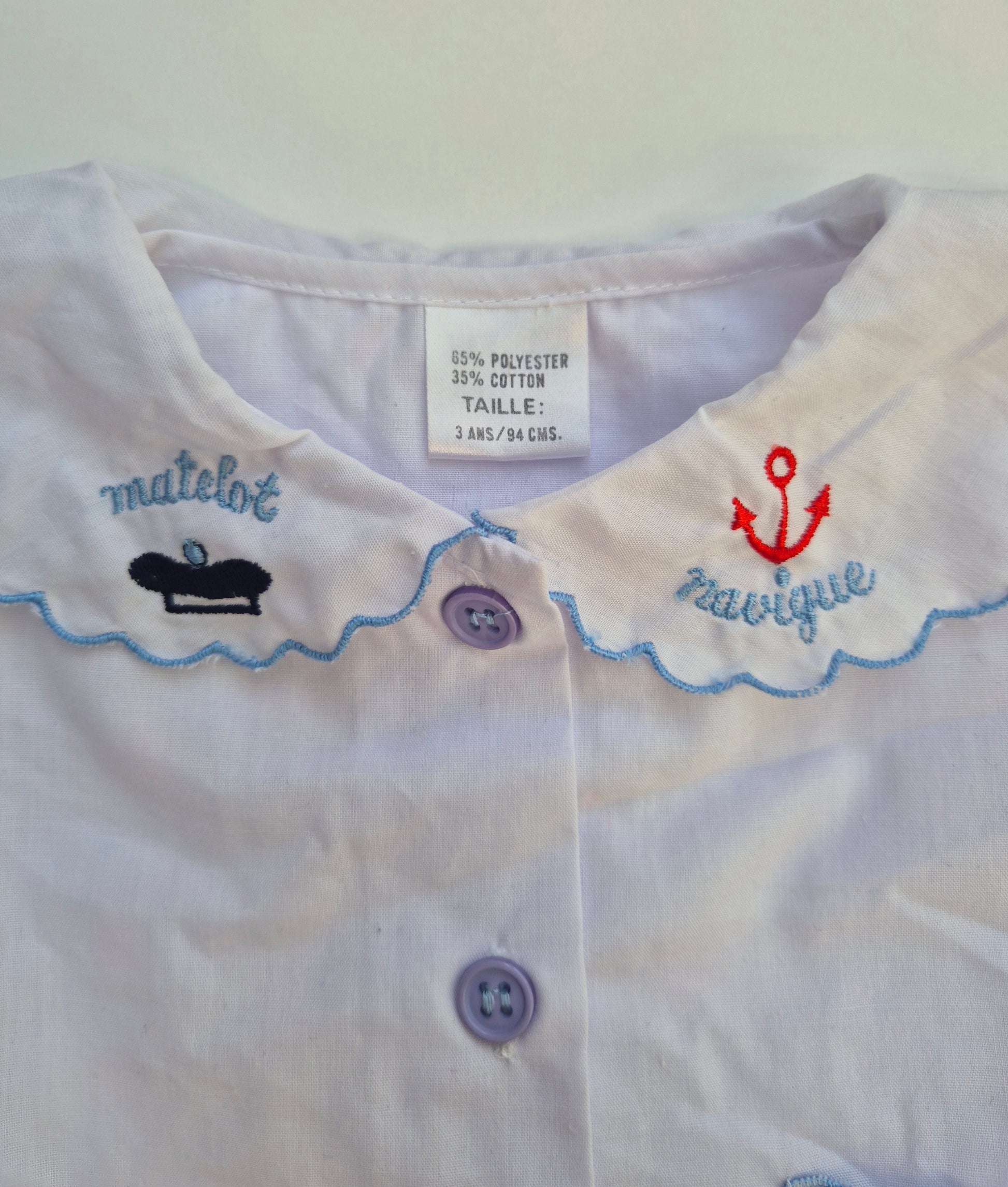 Witte blouse met blauwe details ‘matelot’ – maat 92 | 18 - 24 maanden