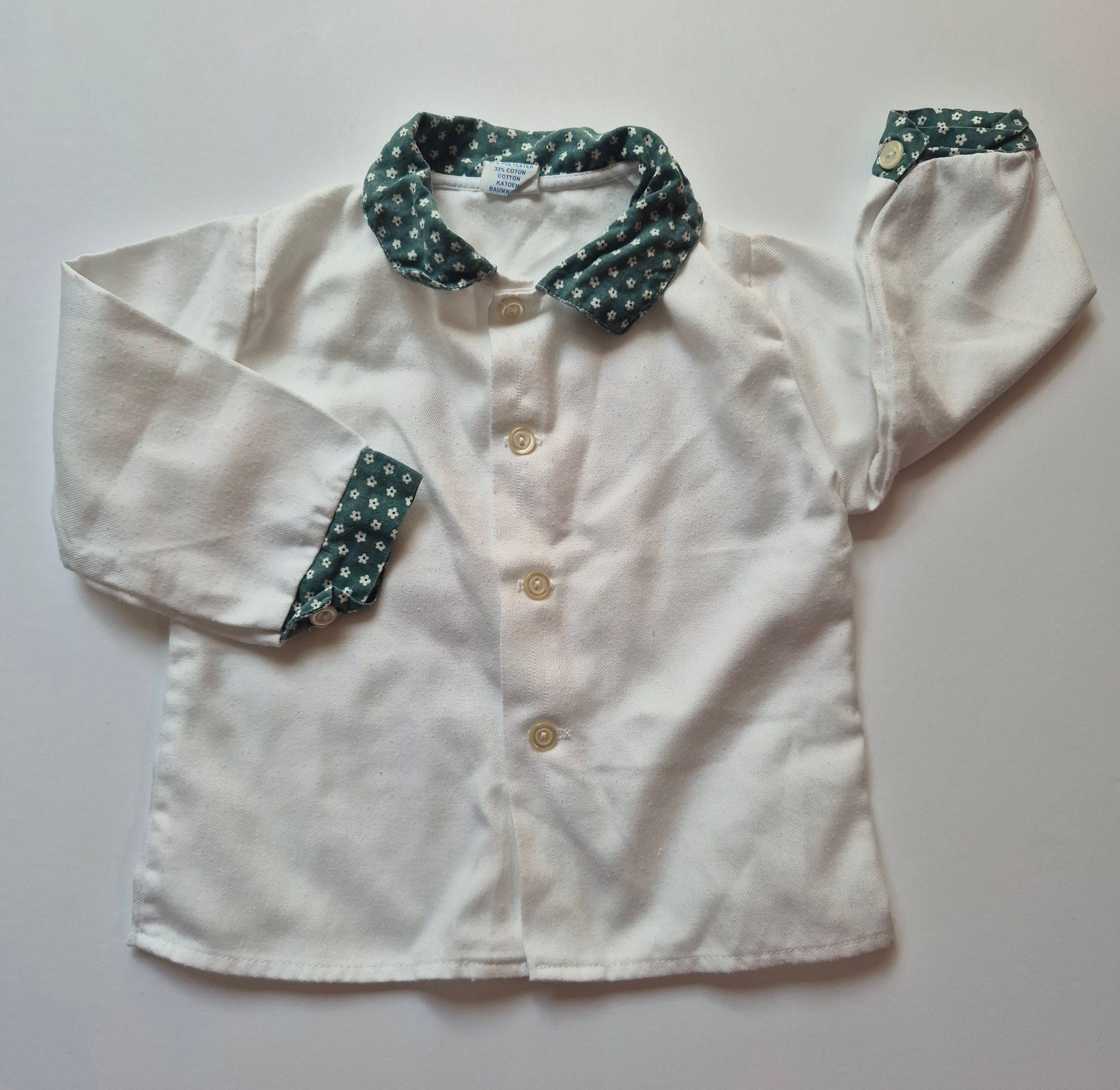 Witte blouse met groene kraag – maat 68 | 3 - 6 maanden